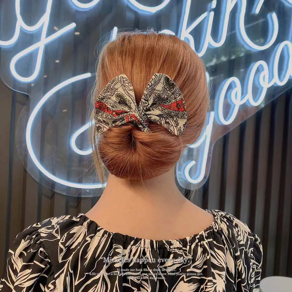Женская лента для волос с узелком, лента для волос с принтом в пучок, повязка на голову, летняя заколка для волос, модные тканевые ленты для волос, инструмент для плетения волос