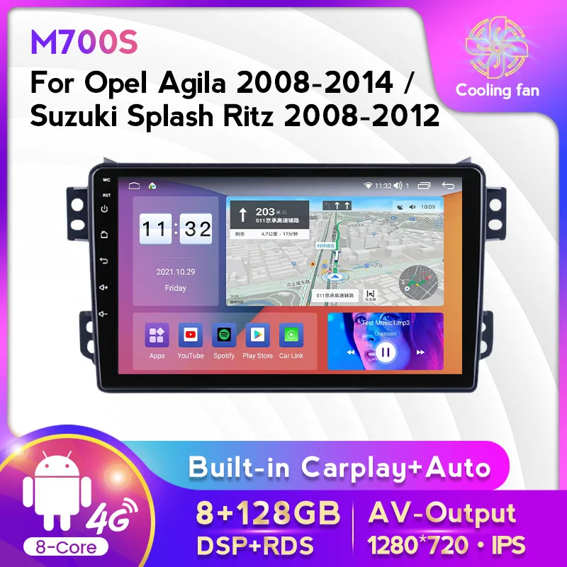 Автомобильный радиоприемник RDS Carplay, Android 11, для Opel Agila Suzuki Splash Ritz, GPS-навигатор, 8G 128G 4G LTE, Wi-Fi, кассета