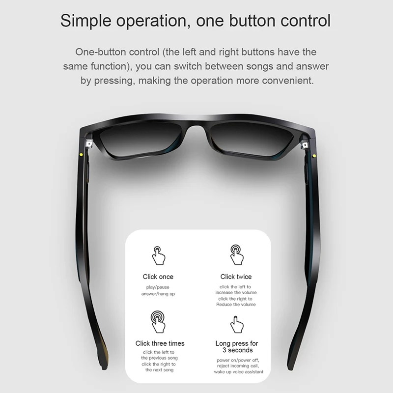 [Характеристики]1. Направленный слуховой опыт: открытый слуховой дизайн, позволит вам избавиться от бондажа гарнитуры, вы можете обратить внимание на состояние дорожного движения, путешествия на векторы и т. д., более безопасный при наслаждении музыкой.Располагается в зеркале, подводится в ухо, а музыка не мешает окружающим.2 светильник корпус не несет нагрузки: Сверхлегкая рамка памяти, хорошая прочность, всего 33 г. Не вызовет Никакой нагрузки.3. Легкий вызов: внедрение усовершенствованной микрофонной системы, сосредоточение внимания на дизайне голосов, оптимизация ослабления ветра и периферийного шума во время звонков, Чтобы звонок был более беспрепятственным.4. Длительный срок службы: Двойной аккумулятор емкостью 110 мАч, может поддерживать песни в течение 5 часов, в режиме ожидания более 200 часов для удовлетворения ваших ежедневных потребностей.5. Bluetooth 5,0: стабилизируйте сигнал передачи, чтобы позвонить/прослушать музыку беспрепятственно.6. Простое управление: нажмите 1 (воспроизведение/пауза/ответ/повесить трубку), подключите 2 (Подключите слева для увеличения громкости, правая сторона уменьшает громкость), И нажмите 3 (слева налево, справа для следующей песни), и удерживайте 3 секунды (Помощник по языку загрузки/отклонения вызова/пробуждения)7. Защитите свои глаза: бутик с покрытием эффективно блокирует блики, может эффективно защитить ваши глаза и сделать цвет более реальным.[Параметр]Функция: прослушивание музыки, звонки, пробуждение голосового помощника, навигацияВес: 33 гЕмкость аккумулятора: 120 мАчВремя зарядки: 2 часаДальность приема: 30 футовДинамик: двойной динамик, стереоУстройство поддержки: iOS и AndroidМатериал зеркала: смолаЗаконченный Материал: UV400 UV-UV или синий светодиодЦвет линз: черный, прозрачный, серыйВодонепроницаемость: воздух, дождь, защита от потаПримечание:1. Из-за различий между различными дисплеями изображение может не отражать реальный цвет проекта. Мы гарантируем, что стиль такой же, как на картинке.2. Из-за различных ручных измерений возможны незначительные различия в размерах.
