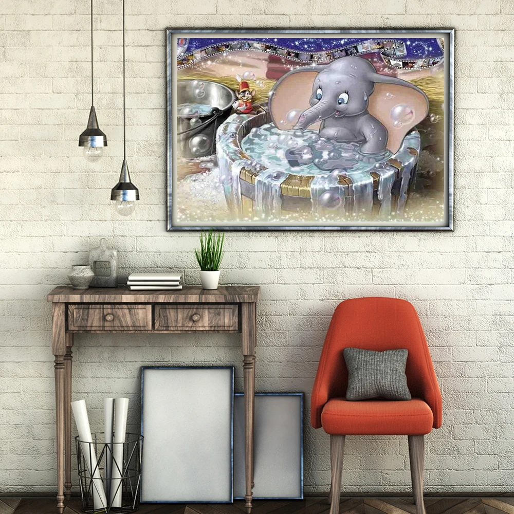 Мультяшная алмазная живопись, мозаика счастливая слон Дамбо 5D Сделай Сам, полностью круглая квадратная стразы, вышивка крестиком, картина для творчества
