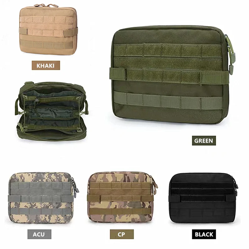 Размеры: 25,5*19*5,5 смВес: 0,3 кгЦвет: черный, хаки, армейский зеленый, CP , ACUМатериал: нейлоновая ткань 1000D, водонепроницаемая подкладка 420D, хлопковая подкладка с жемчугом. Прочная и долговечная, в то же время прочная и удобная, мягкая конструкция системы MOLLE, может быть загружена тактическими жилетами, ремнями, поясными уплотнениями и другими сумками серии.