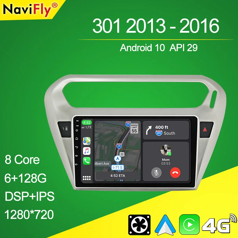 Автомагнитола NaviFly 7862C, Android 10, GPS, для Peugeot 301Citroen C-Elysee CElysee 2012 - 2016