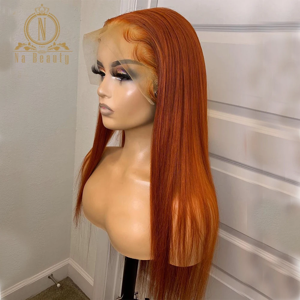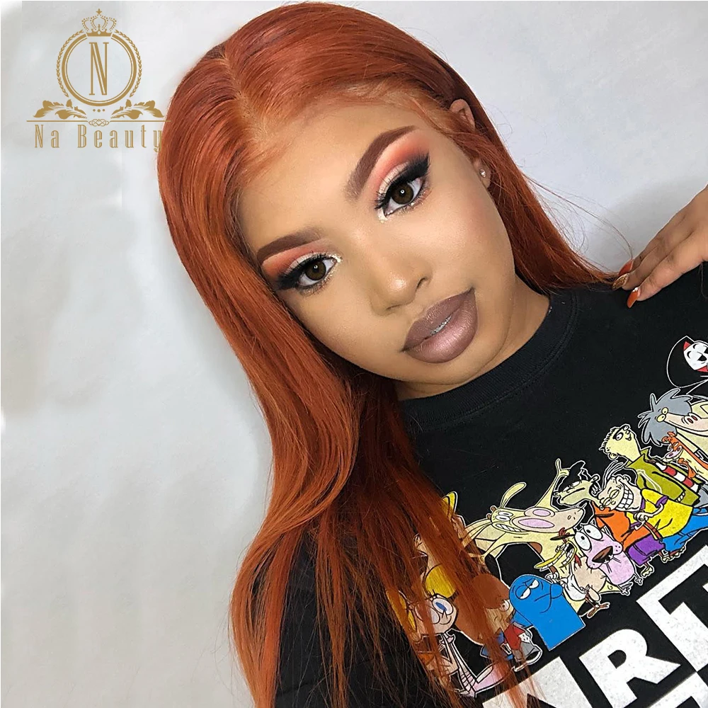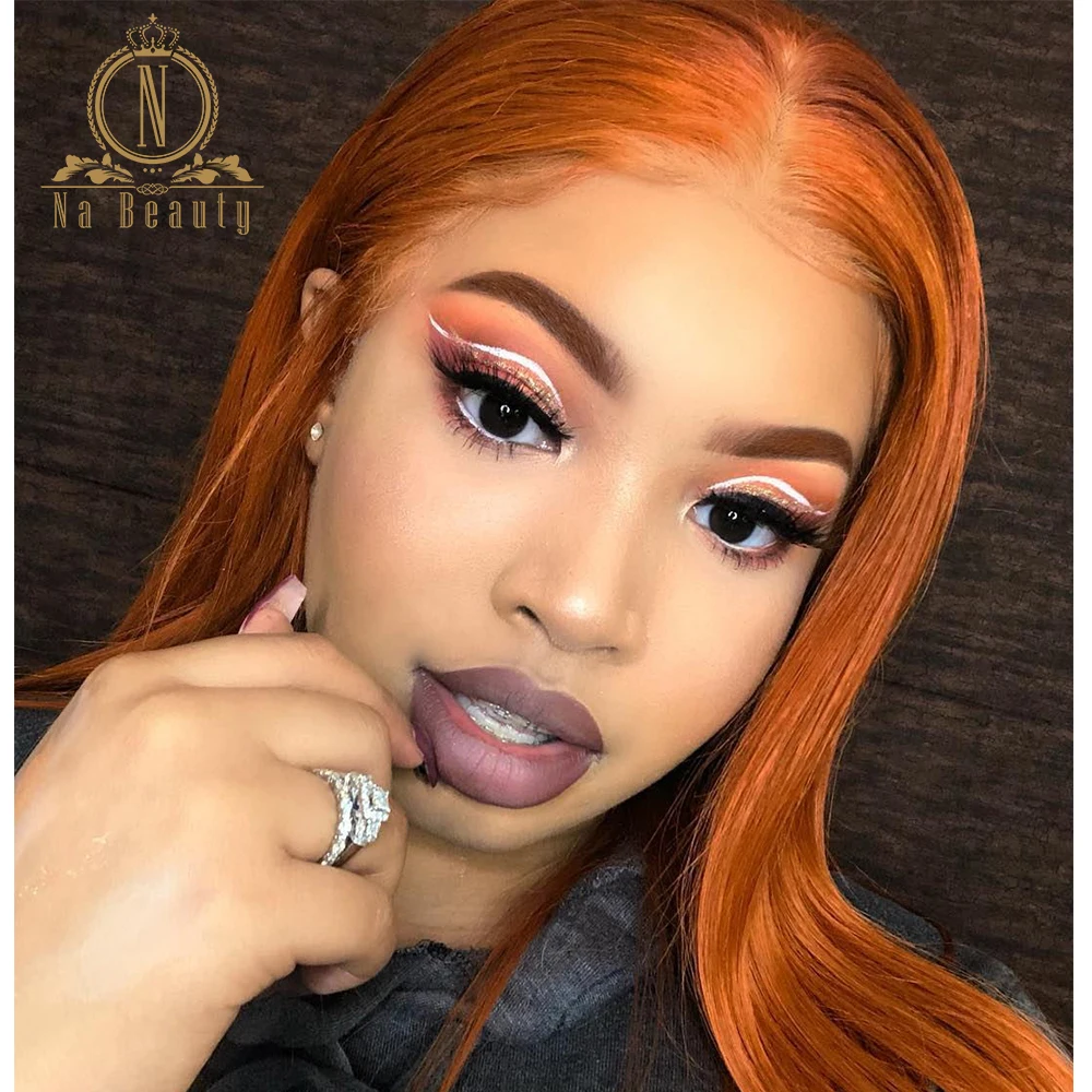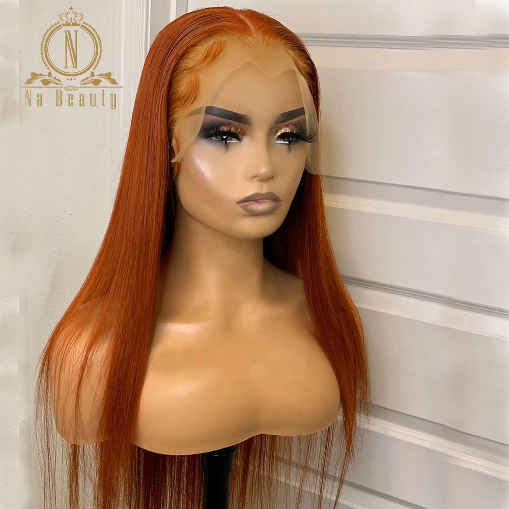 Имбирный оранжевый цвет парик объемная волна HD прозрачные кружевные человеческие волосы парики T Часть Кружевной парик для черных женщин Remy Na Beauty 180%