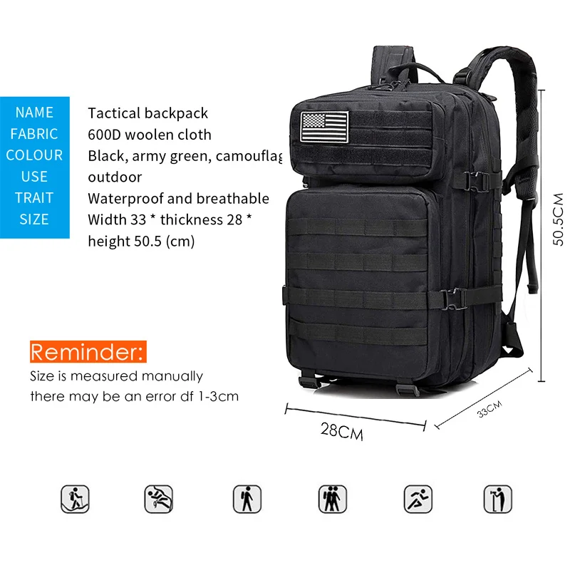 Военный тактический рюкзак армии 3 дня Штурмовой Рюкзак, 50L Molle сумка ранец рюкзак для мужчин, рюкзак для путешествий, тактический вещевой мешок