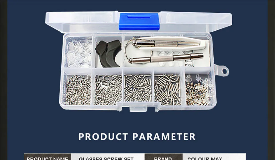 Посылка включает:Прибл. Набор винтов 400 шт.2 отвертки micro 3 в 11 пинцет1 пара Противоскользящих ушных крючков10 пар универсальных носоупоров1 салфетка для очистки из микрофибры1 Прозрачная Коробка для хранения