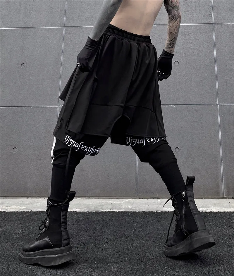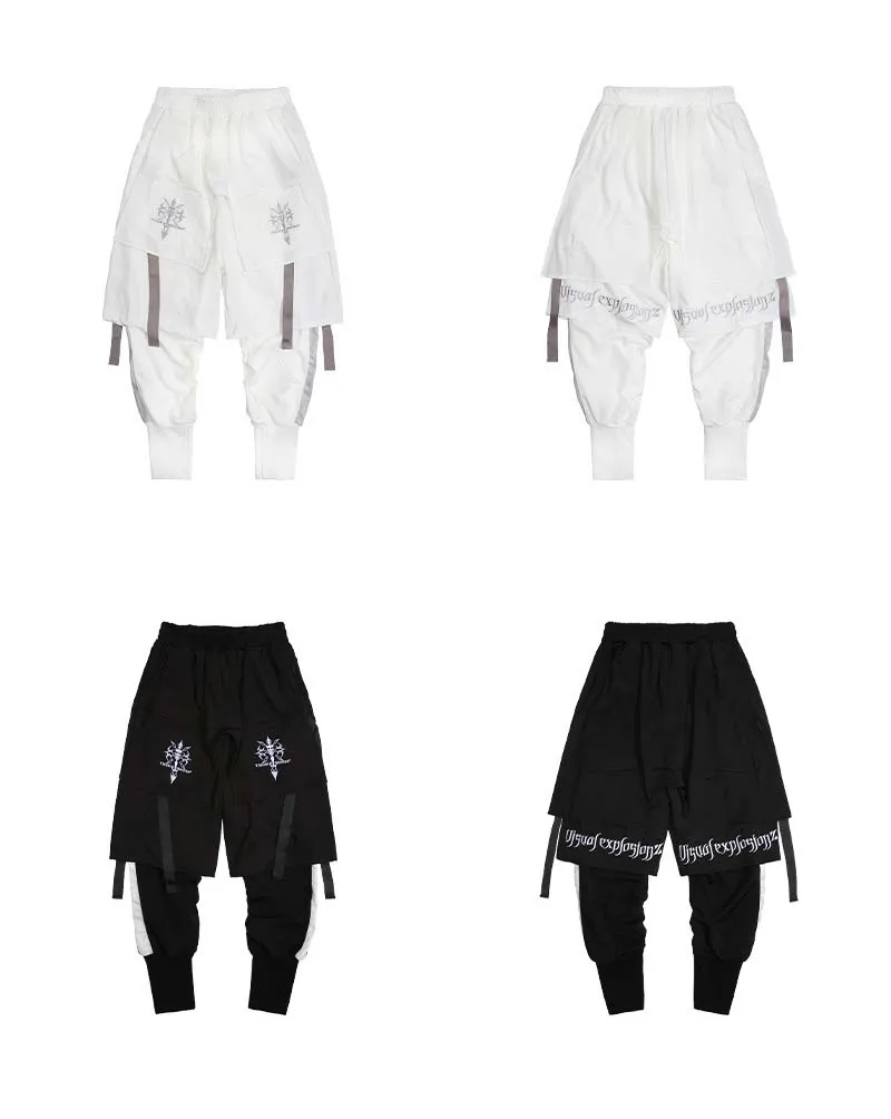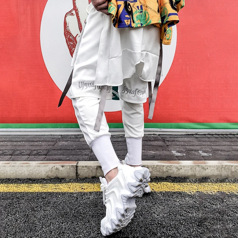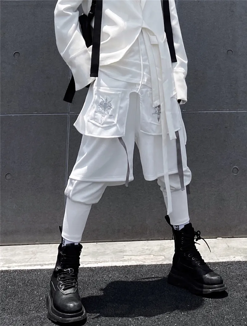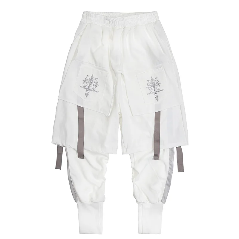 Брюки-Капри мужские с вышивкой, двухслойные свободные штаны-султанки, джоггеры с лентой, в стиле хип-хоп, Харадзюку, разные модели
