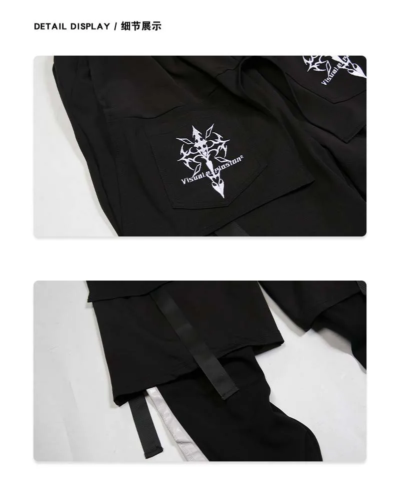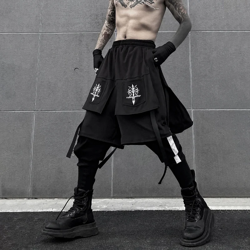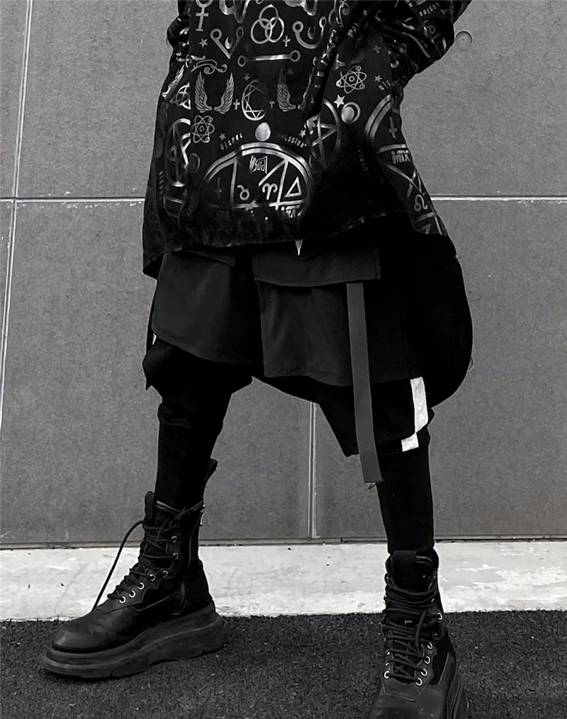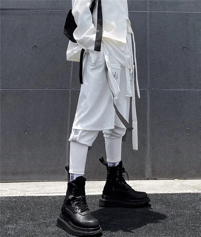 Брюки-Капри мужские с вышивкой, двухслойные свободные штаны-султанки, джоггеры с лентой, в стиле хип-хоп, Харадзюку, разные модели