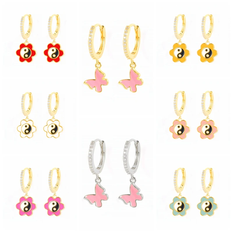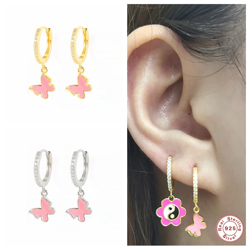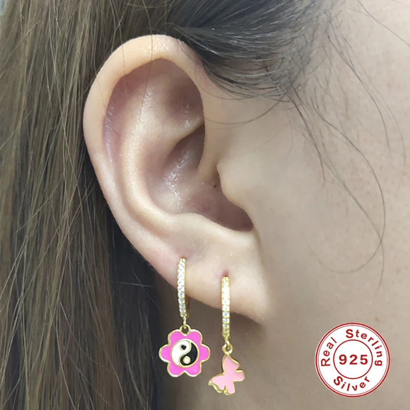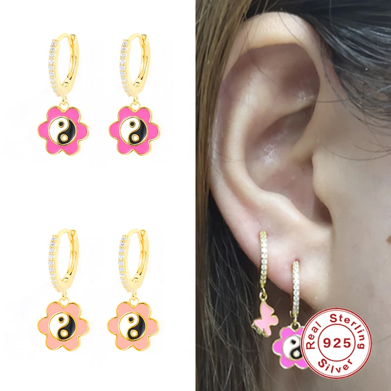 Aide 2021 тренд Эмаль Инь-Ян, серьги в виде колец, 925 пробы серебро капель масла сердечка цветка бабочки серьги Huggie, ювелирные изделия
