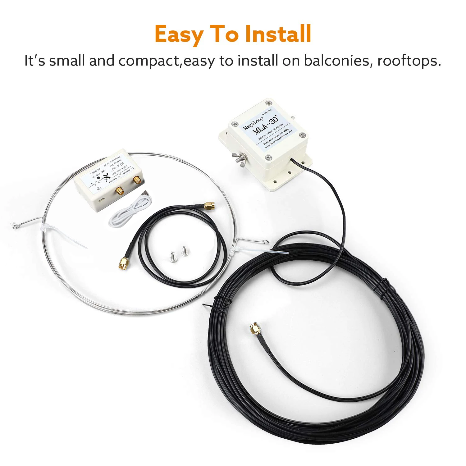 MLA-30 + контурная антенна проста в установке и может быть легко установлена на балконах, крышах и других небольших, компактных, низкопрофильных установках, не беспокоясь о соседях и противостоянии собственности.