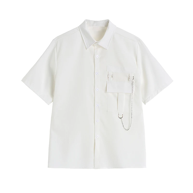 Женская блузка с коротким рукавом, черная Готическая блузка с цепочкой, уличная одежда большого размера в стиле Харадзюку, рубашка в стиле хип-хоп и панк, лето 2021