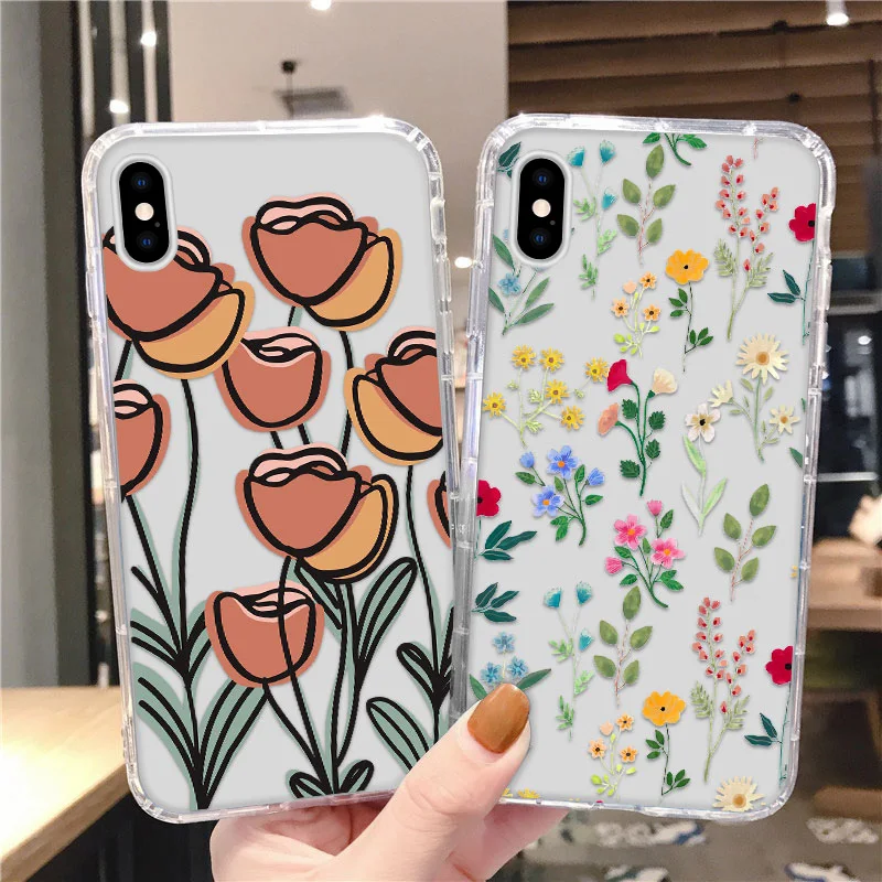 Чехол для Iphone 11 12 13 Pro Max, Роскошный чехол для Iphone11 12 Mini 7 8 XR SE 2020 X Xs 6 s Plus, противоударные прозрачные чехлы с цветами
