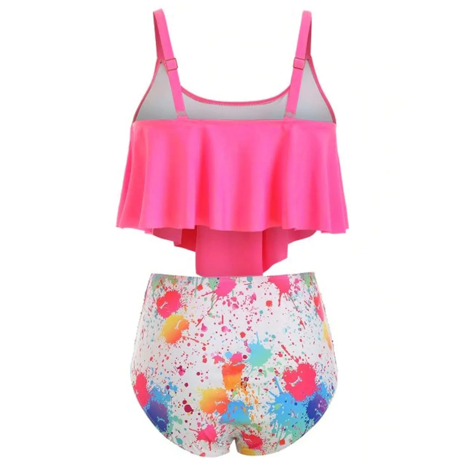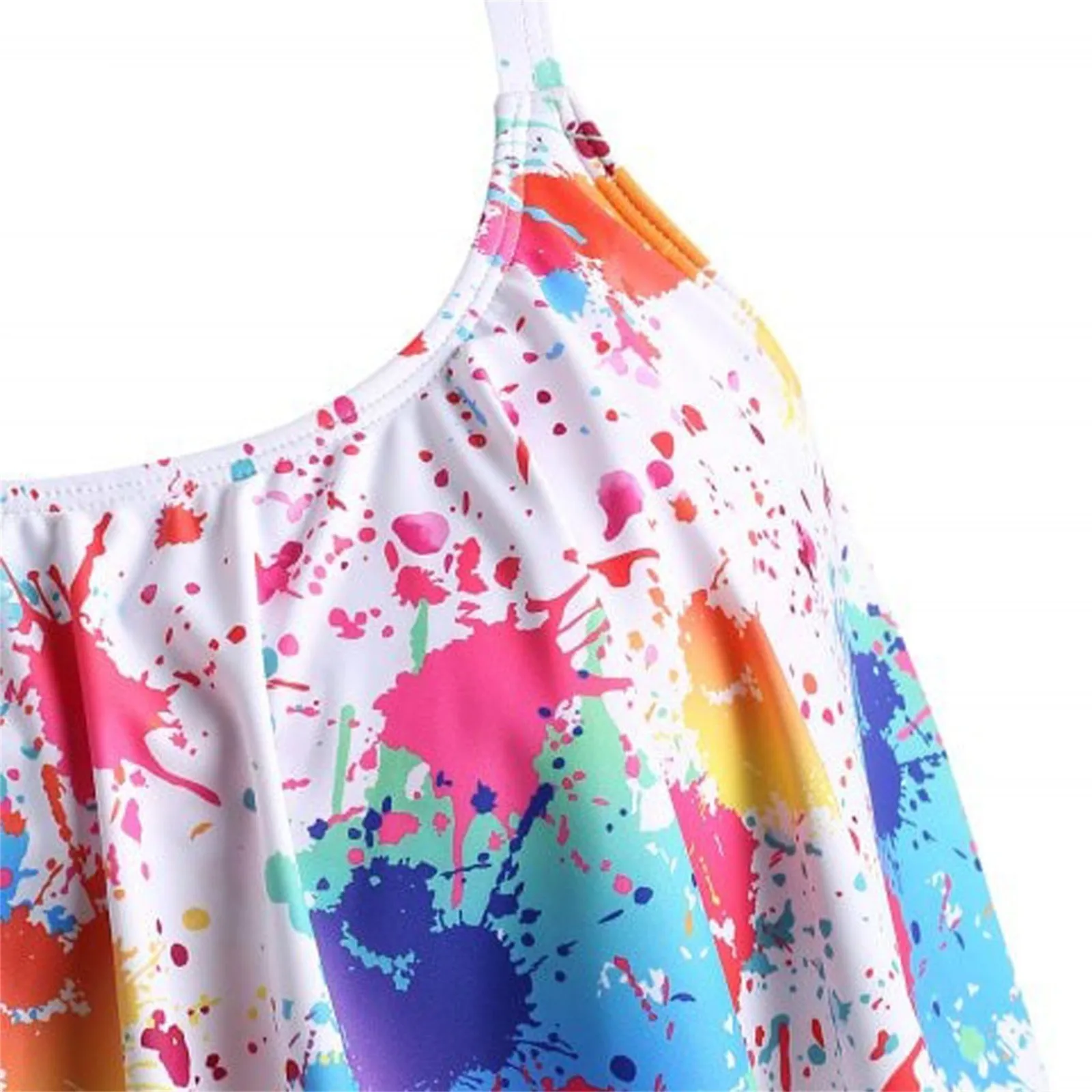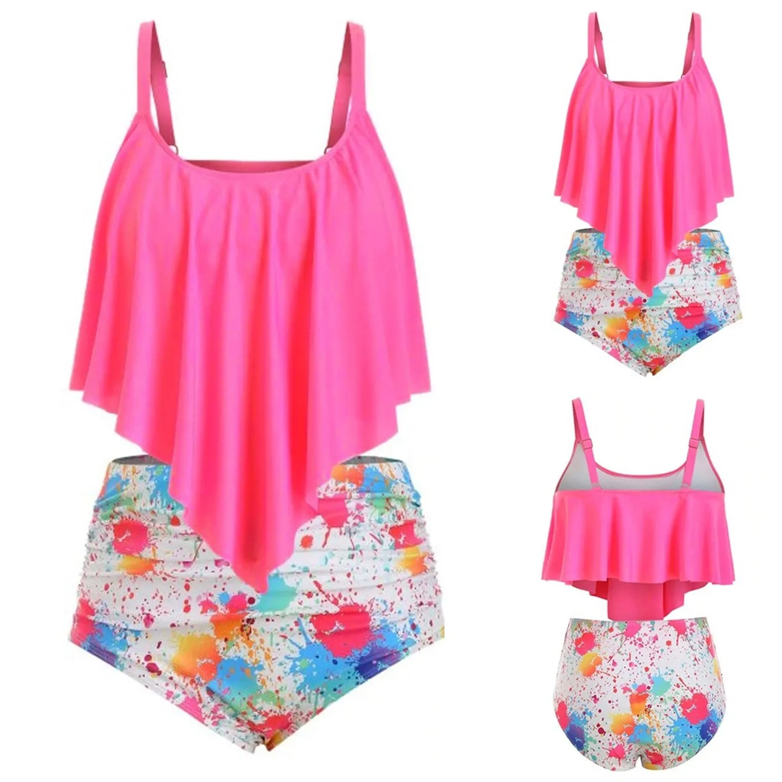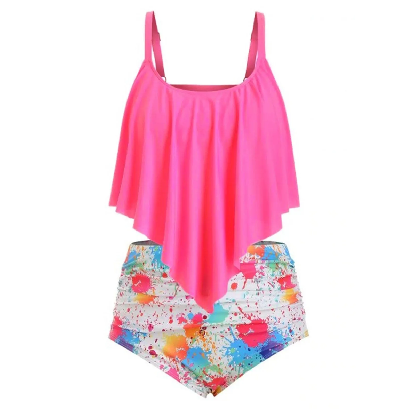 Женский купальный костюм из двух предметов, топ с оборками и высокой талией, комплект танкини