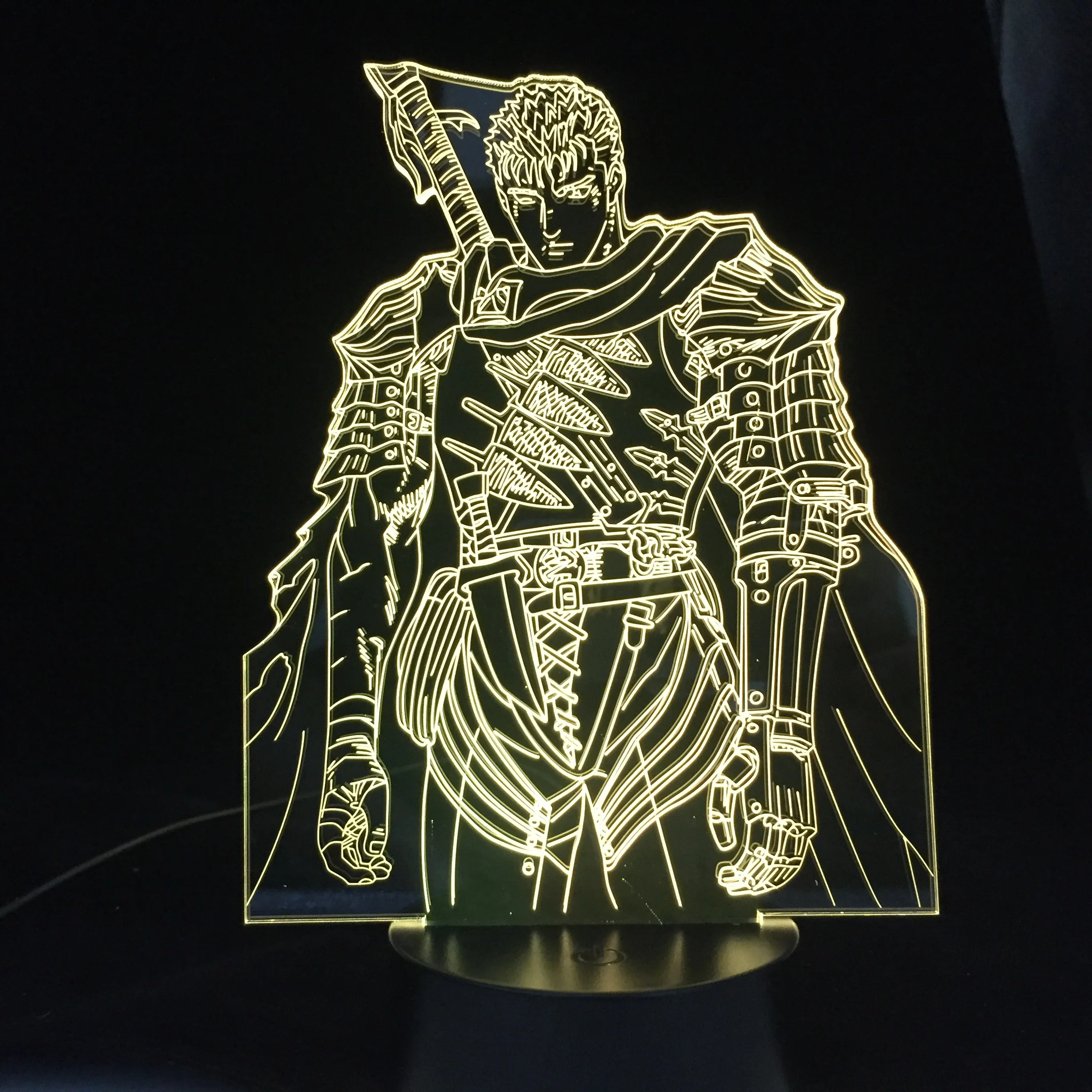 Anime Berserk 3d лампа Ночной светильник для детей и девочек Украшения в спальню светильник манга, подарок на день рождения, Ночной светильник с ума