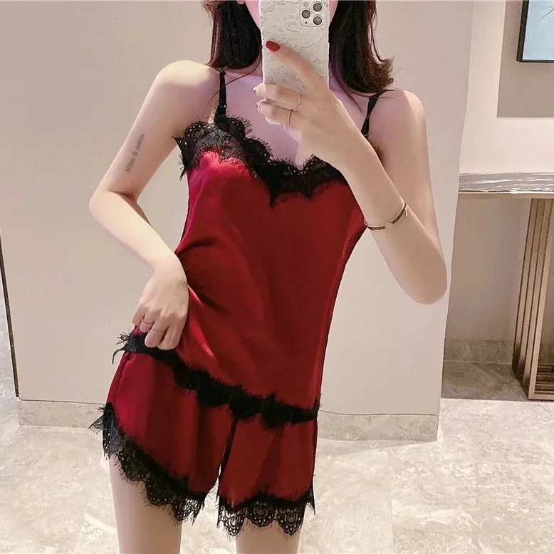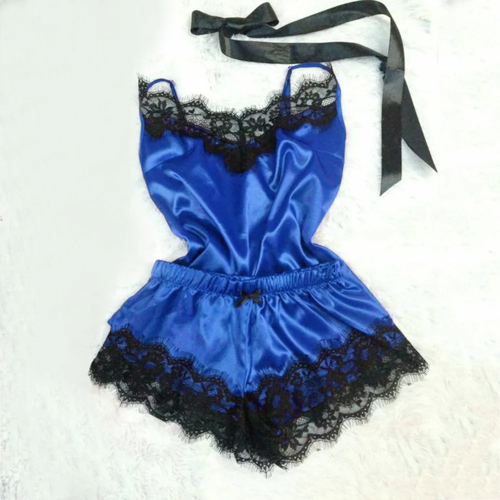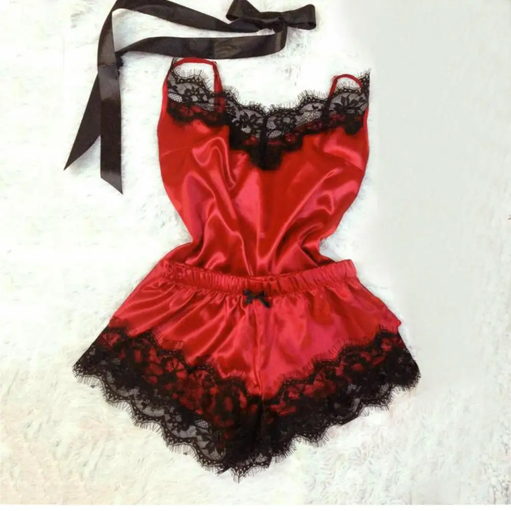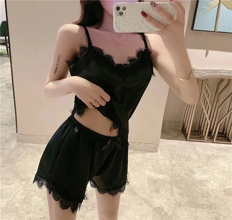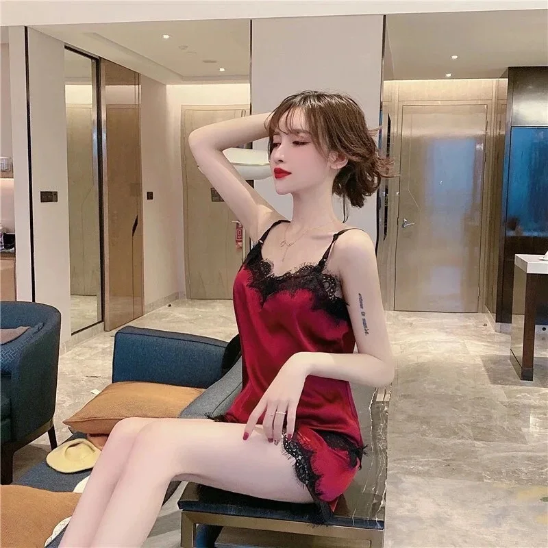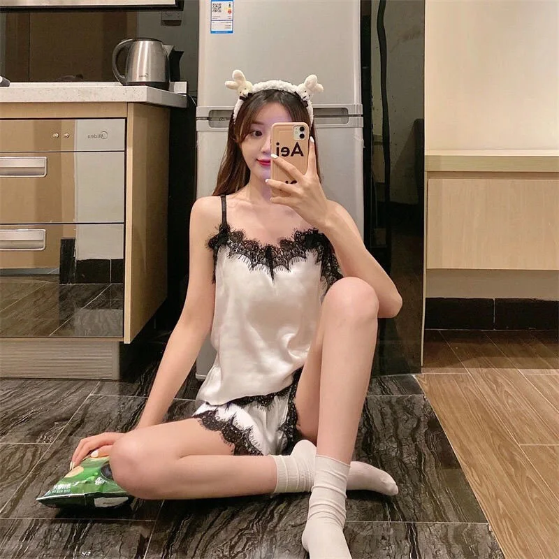 Пикантная Женская атласная пижама кружевная Милая корейская модная Домашняя одежда топы и шорты Шелковая пижама однотонная Пижама