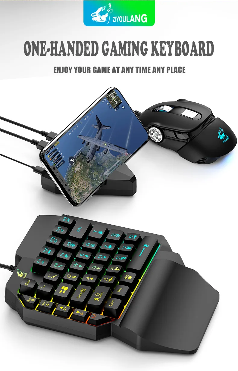 Игровая клавиатура DISOUR для телефона одной рукой с RGB-подсветкой...