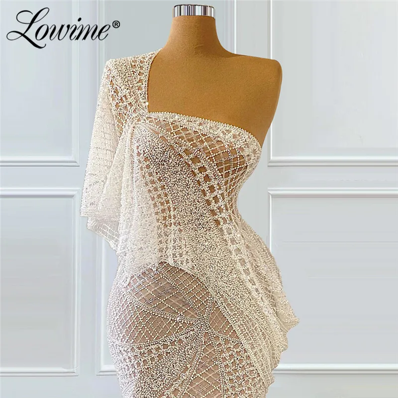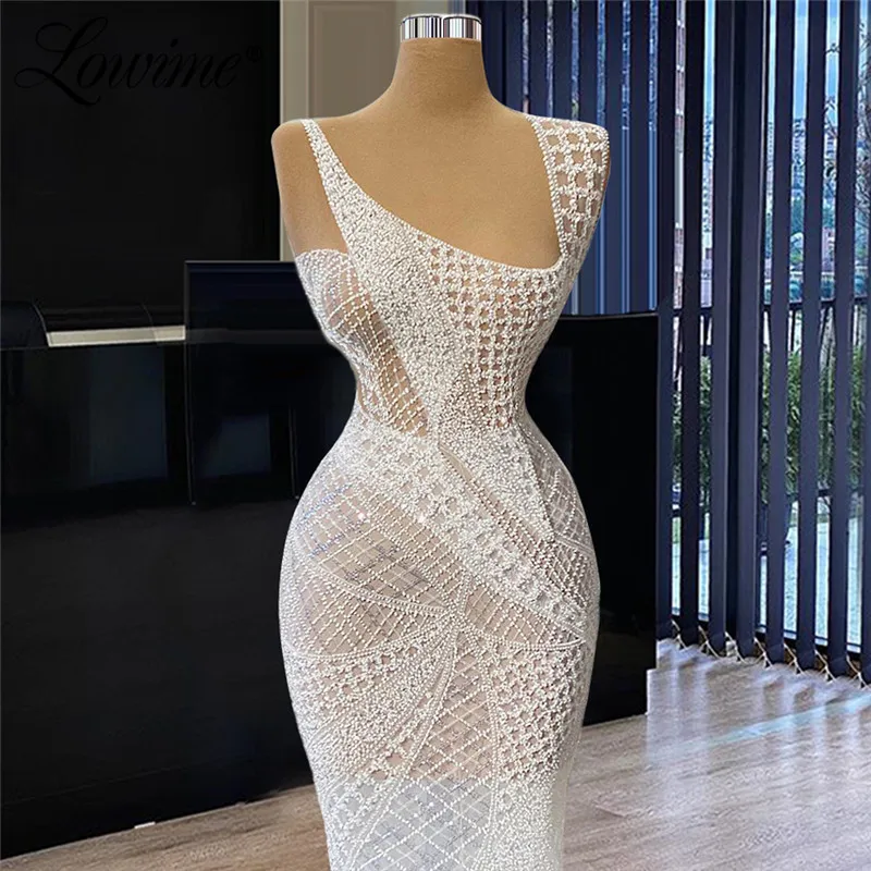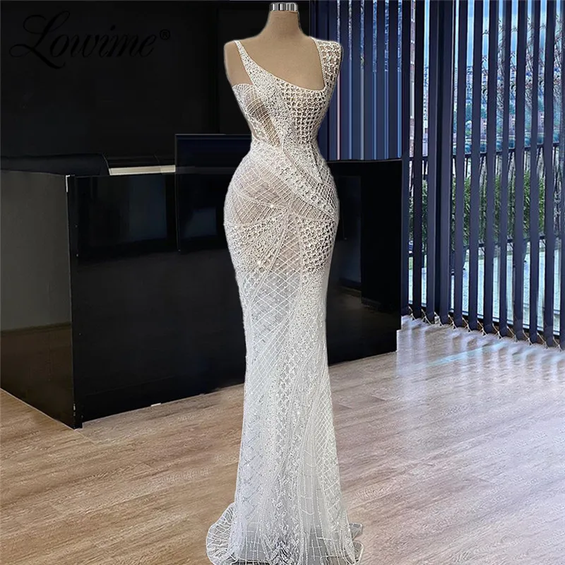 Lowime иллюзионные кружевные вечерние платья 2021 с вырезом арабские вечерние платья-русалки для свадьбы с бисером Выпускные платья на заказ