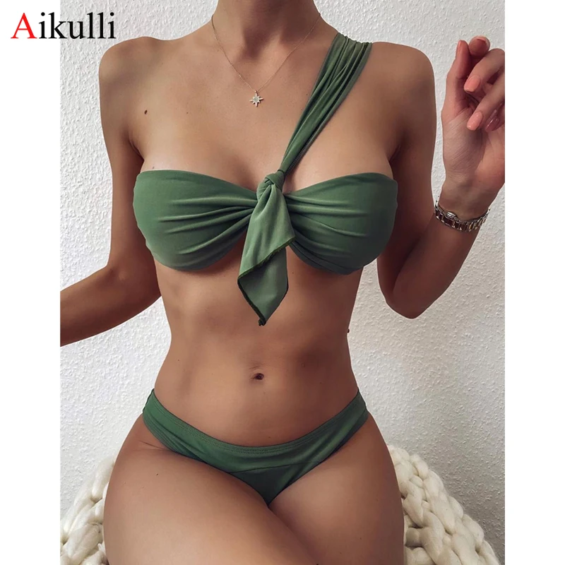 Купальник женский, бикини, сексуальный комплект бикини с пуш-ап на одно плечо, новинка 2021, летние купальники, бикини