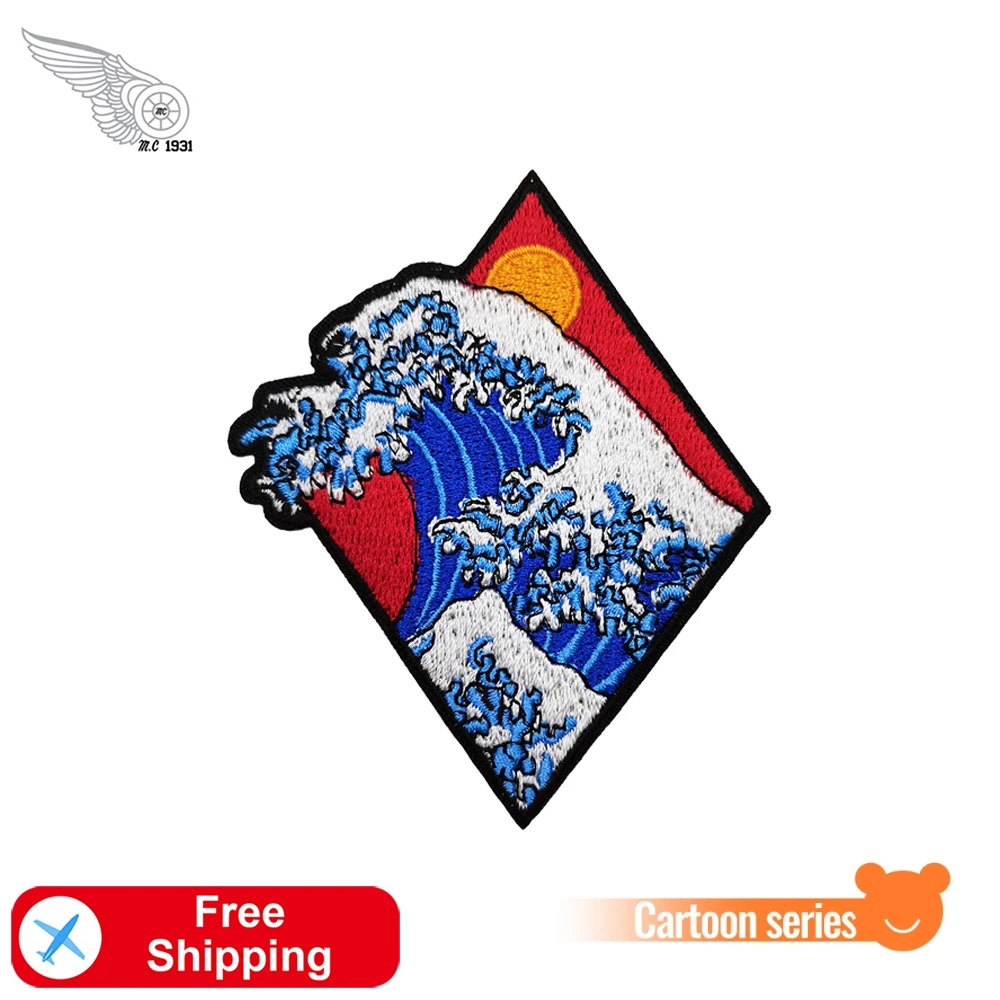 Вышивка волн для серфинга, нашивки, Мультяшные вещи, Sunrise Sea, швейные значки, оптовая продажа, заплатки для одежды, дешевые наклейки