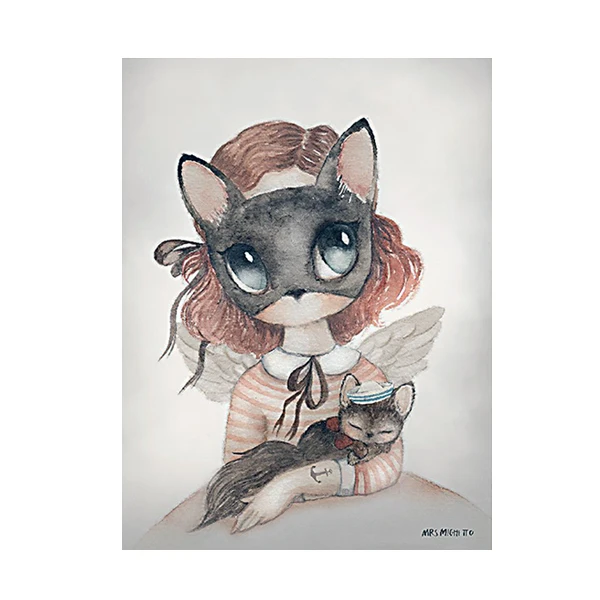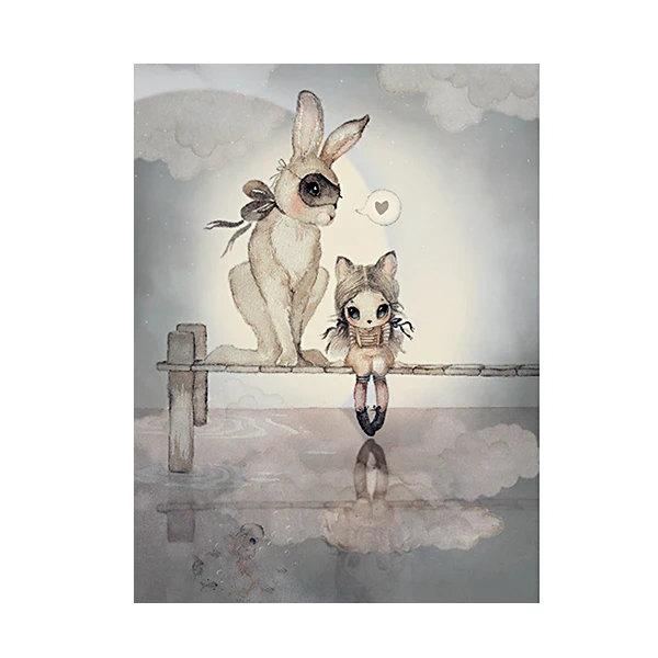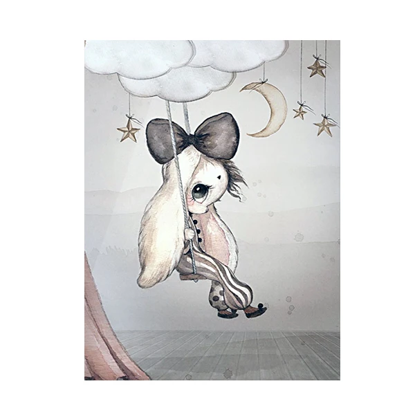 Скандинавский акварельный кролик мультфильм Ангел абстрактный холст художественный плакат декоративное искусство настенное украшение для детской комнаты живопись