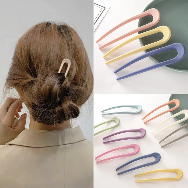 Новинка корейский элегантный винтажный разноцветный геометрический U-образный акриловый зажим для волос с вилкой головные уборы аксессуары для женщин инструмент для укладки волос