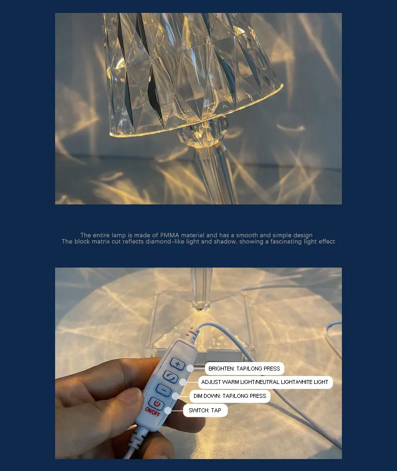 Алмазная настольная лампа USB перезаряжаемая акриловая декоративная...
