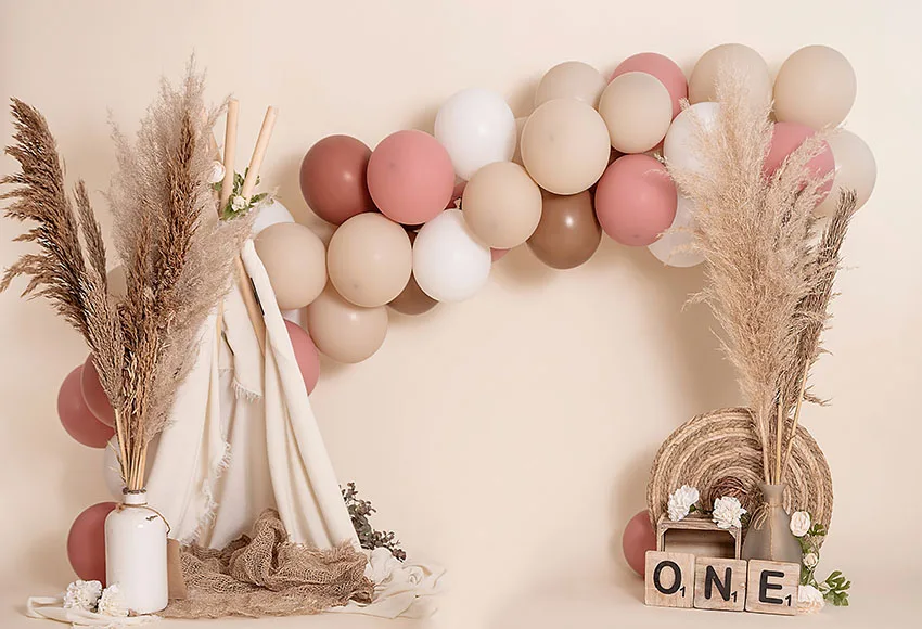 Фон для фотосъемки в богемном стиле с розовыми воздушными шарами вазой растениями палаткой для новорожденных на 1-й День рождения фон для фотостудии реквизит для фотозоны