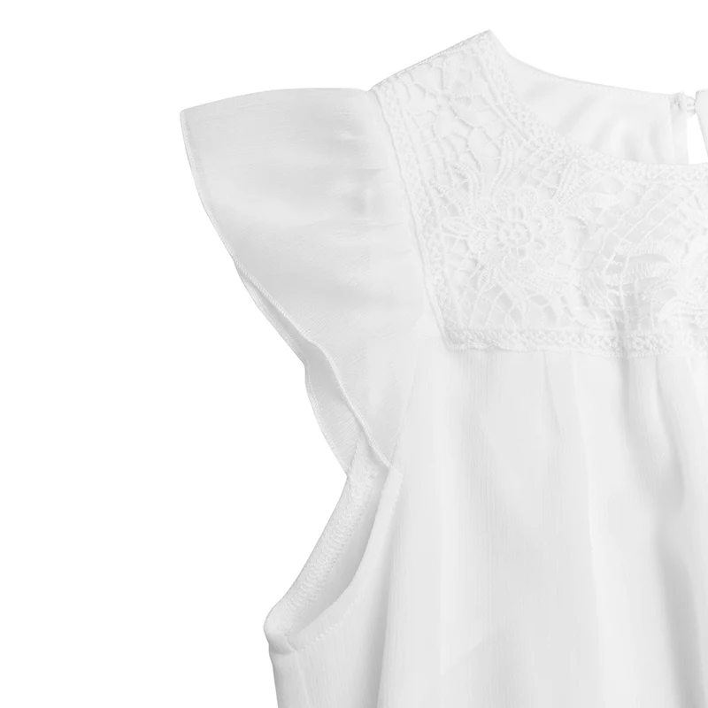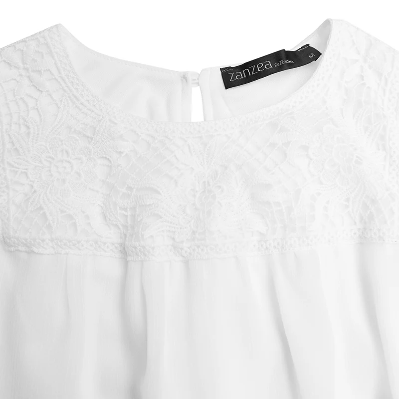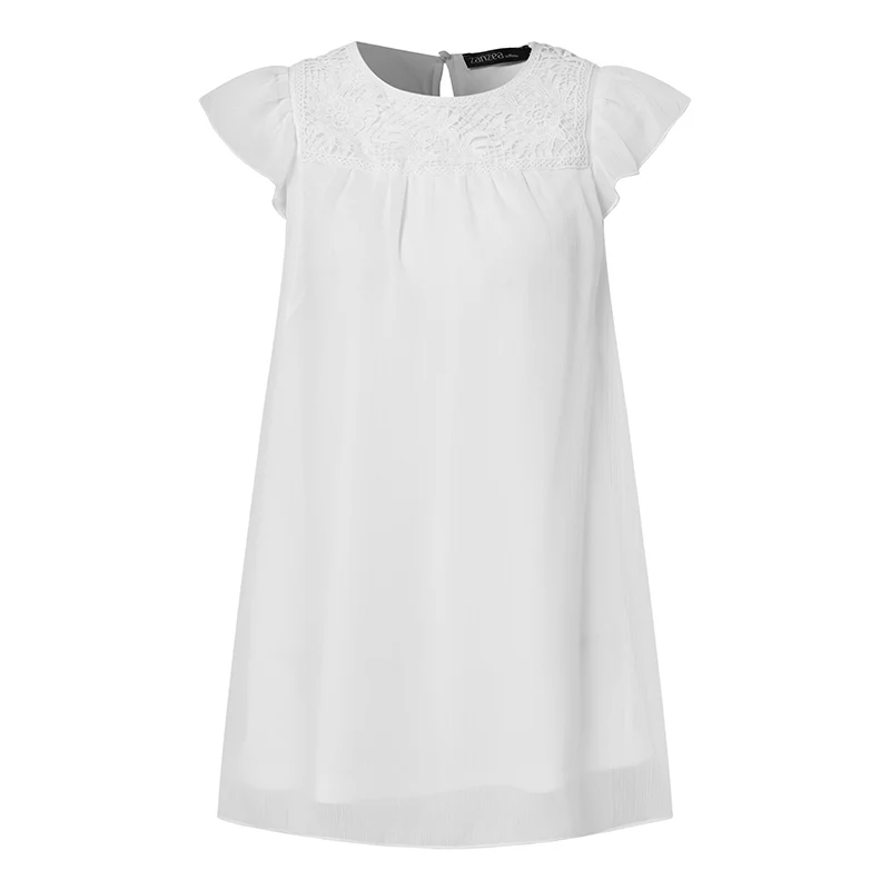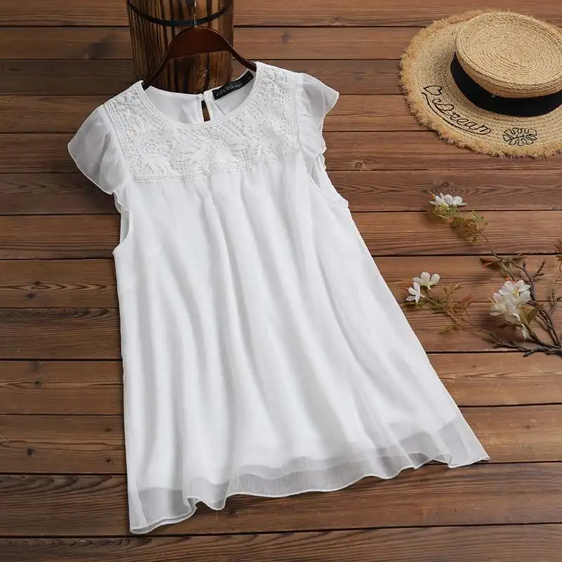 Женская офисная блузка оверсайз ZANZEA, летние топы, элегантная Однотонная рубашка с оборками, кружевная Лоскутная Блузка без рукавов