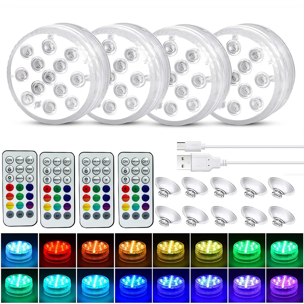 Подводная Светодиодная лампа на присоске, погружной ночной Светильник для бассейна, сада, вазы, 13 светодиодов, зарядка через USB, 16 цветов