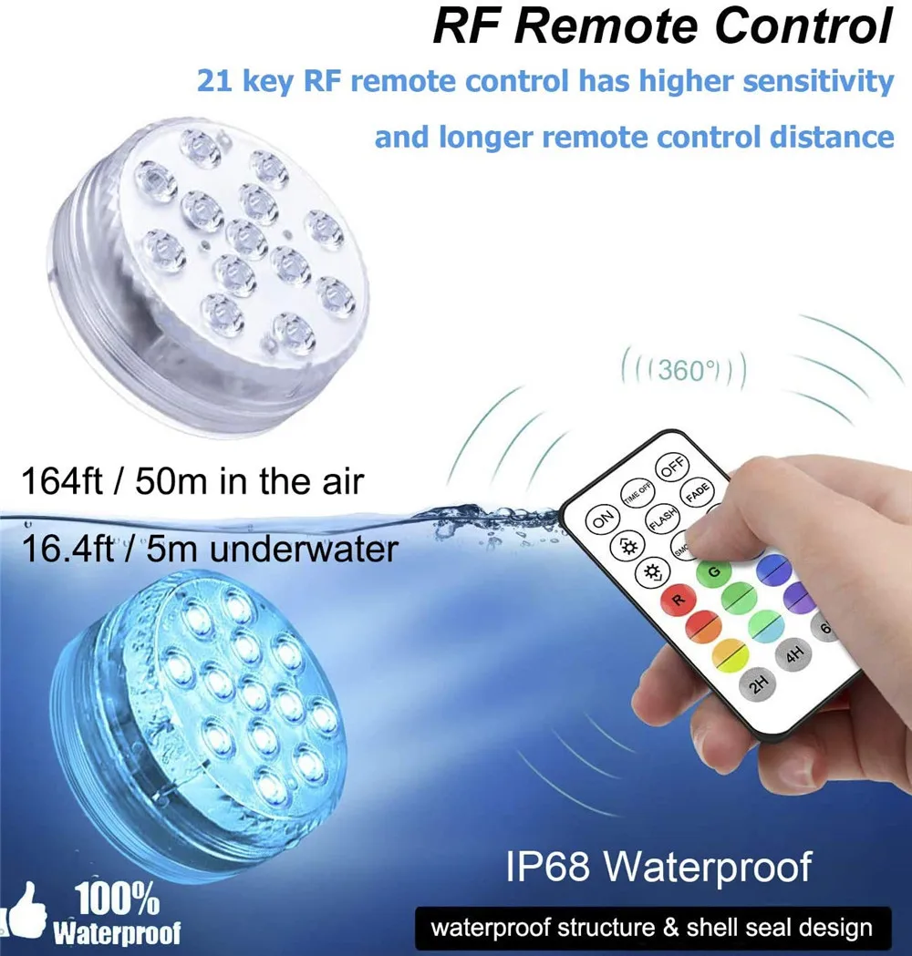 Водонепроницаемость: водонепроницаемая конструкция IP68, оснащена толстым резиновым уплотнительным кольцом в крышке, чтобы убедиться, что светильник плотно затягивается каждый раз, прежде чем положить в воду. Более водонепроницаемый, чем другие лампы для пруда.