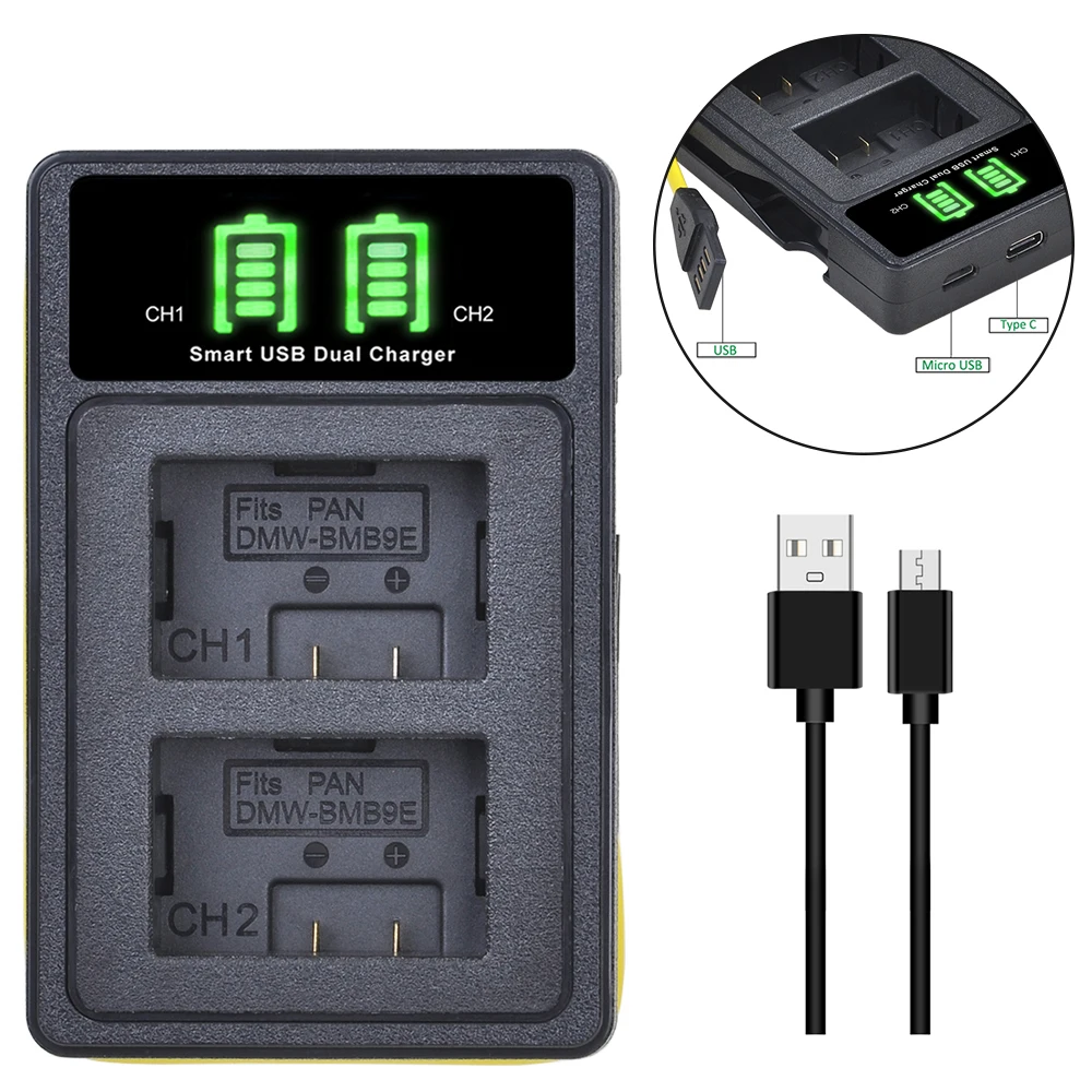 DMW-BMB9 DMW-BMB9E аккумулятор + двойное светодиодное зарядное устройство с портом type-C