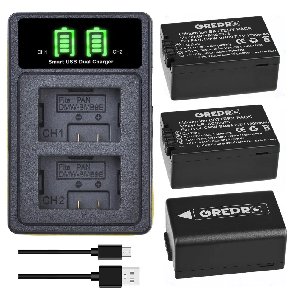 Аккумулятор и зарядное устройство 1300 мА ч, DMW-BMB9E, BMB9 DMW-BMB9, со встроенным USB, для Panasonic DMC FZ45 FZ60 FZ100 FZ80 FZ82 FZ40 V-Lux2