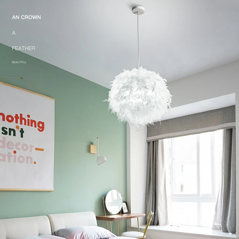 1. Изготовлен из высококачественных перьев и прочных акриловых абажуров высокого качества.-2. Утолщенная хромированная крыша, более высокая грузоподъемность, безопасность и стабильность.3. Высококачественный перьевой абажур, встроенный патрон лампы Е27, очень стабильный, экологически чистый и безопасный.-4. Изысканное украшение для дома, красивый абажур из перьев, естественно создает романтическую и теплую милую атмосферу.-5. Отлично подходит для спальни, детской комнаты, гостиной, столовой, гостиницы и т. Д.Спецификация:Товар: люстра с перьями (без лампочки)Материал: металл + акрил + пероРазмер абажура: диаметр 30 см/40 см/50 смЦвет: белый, розовыйЦоколь лампы: E27Площадь освещения: 5-30 квадратных метровПосылка1 * люстра (без лампочки)
