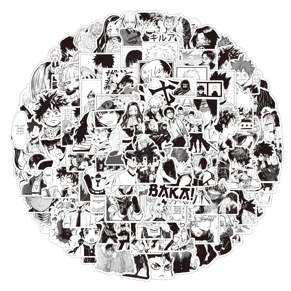 103050100 шт. смешанные черно-белые аниме наклейки атака на Титанов ююютсу кайсен Мультяшные Стикеры для путешествий гитары ноутбука Наклейка