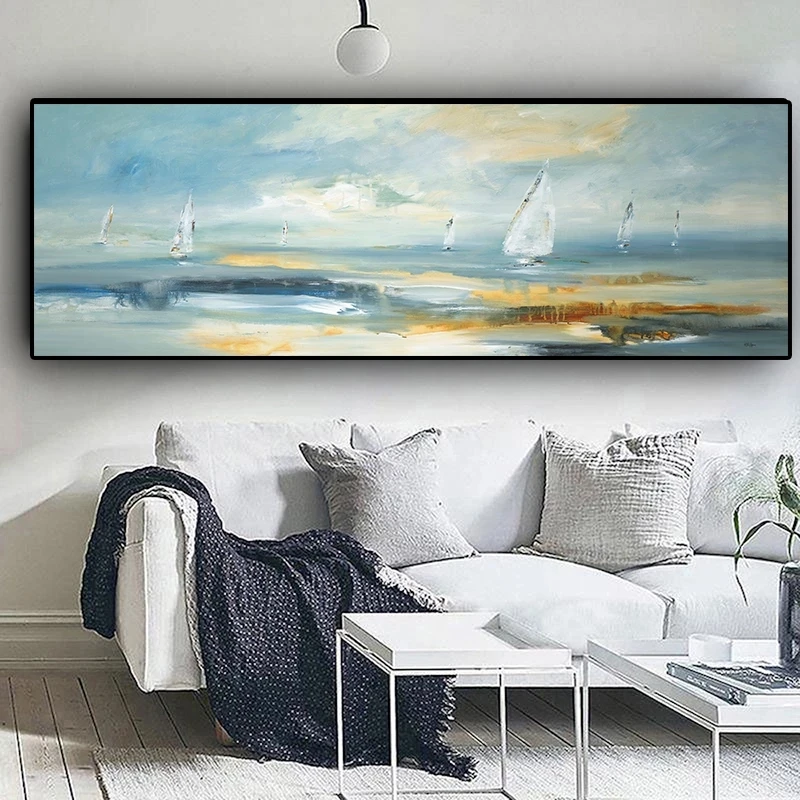 Картина маслом на холсте, Настенная картина с абстрактными изображениями лодки, пейзажа, в скандинавском стиле, для домашнего декора