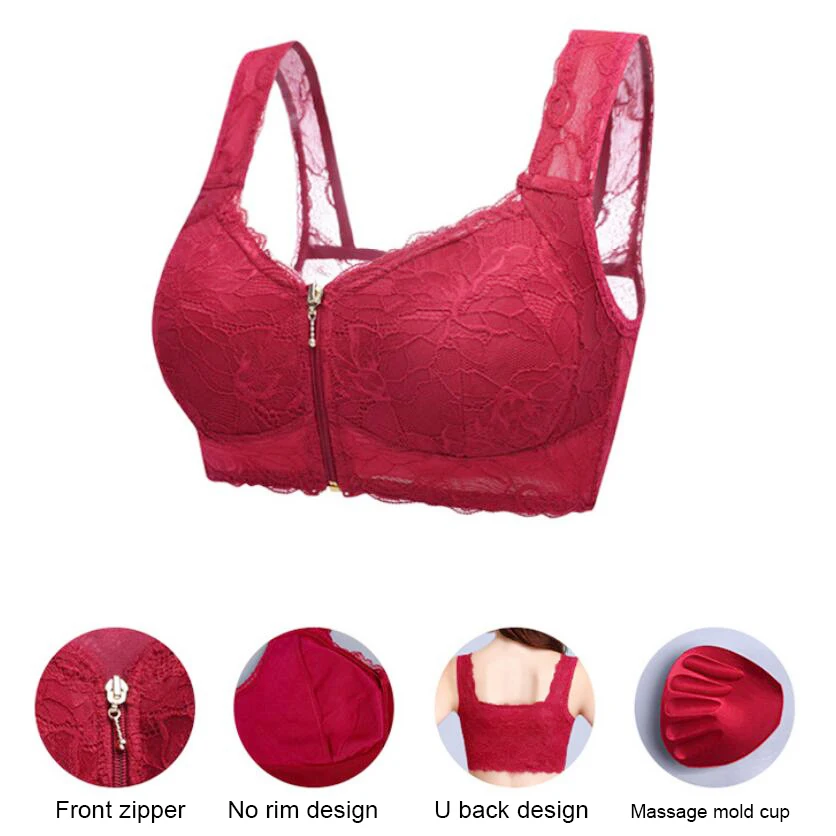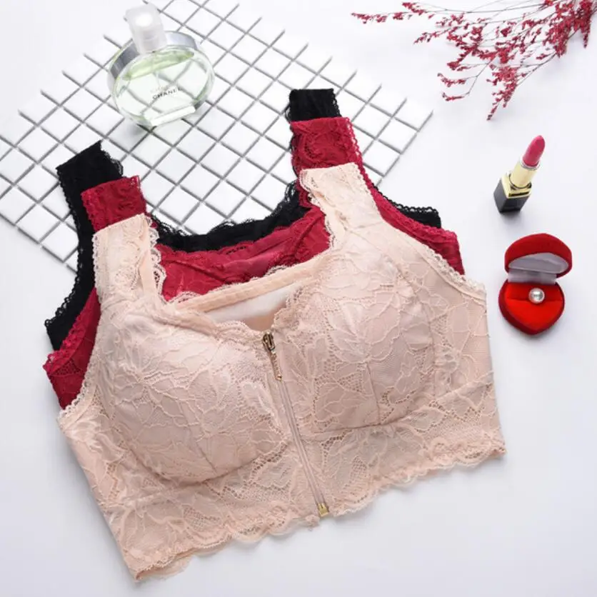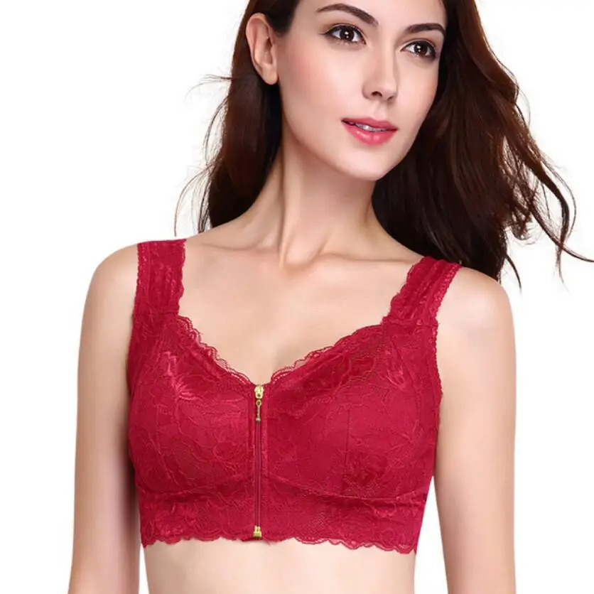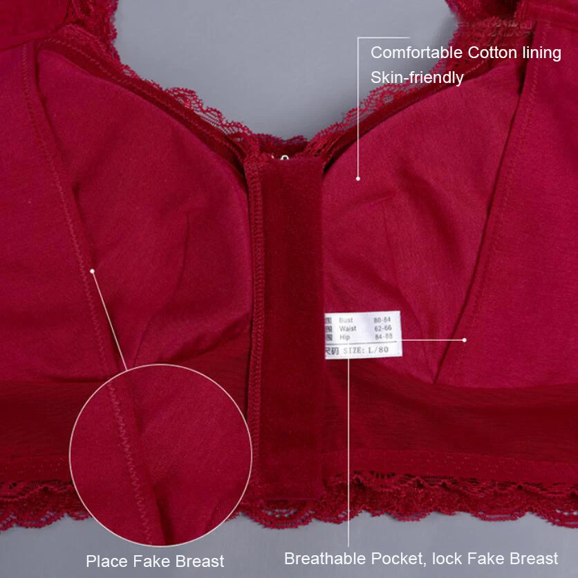 Бюстгальтер для мастэктомии 3XL с красной молнией спереди и силиконовым протезом груди для рака груди у женщин есть карманы для заполнения искусственных грудей
