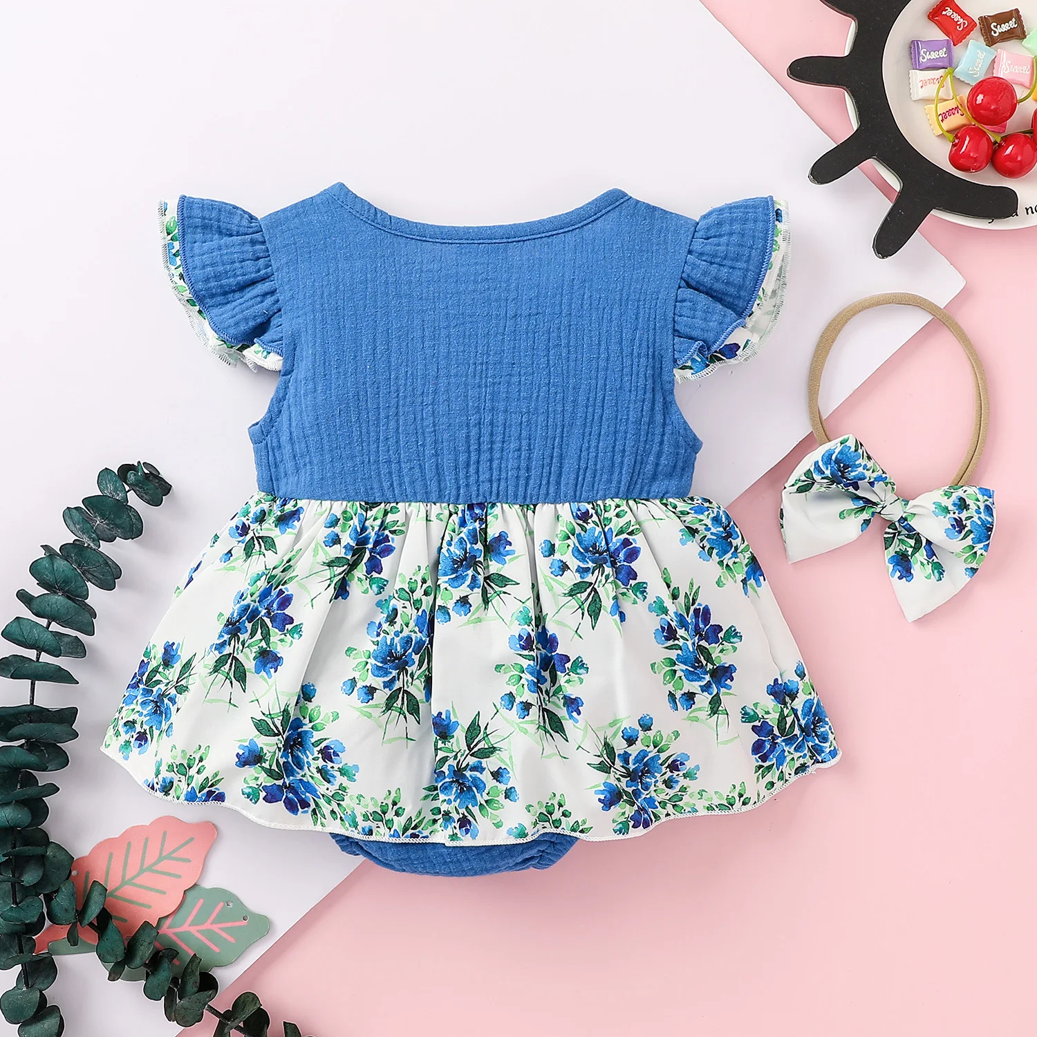 Комбинезон для девочек 0-18 месяцев, цветочный принт, повязка на го...