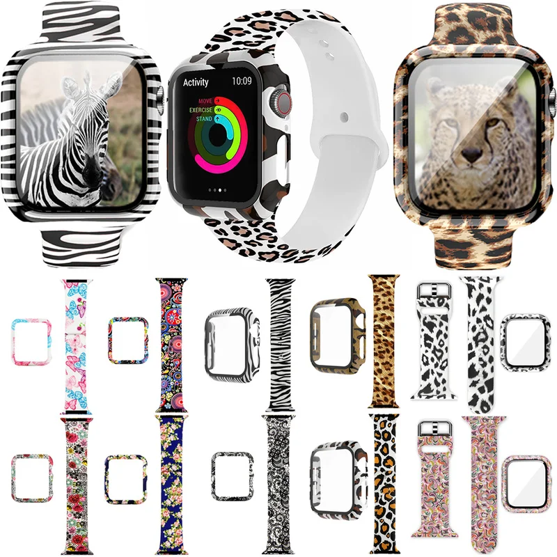 Часы защитная лента чехол для Apple Watch серии SE, 6, 5, 4, 3 печатных петля ремня + рамка лоскутных покрывал для наручных часов IWatch, 44 мм, 42 мм, 38 мм, 40 мм