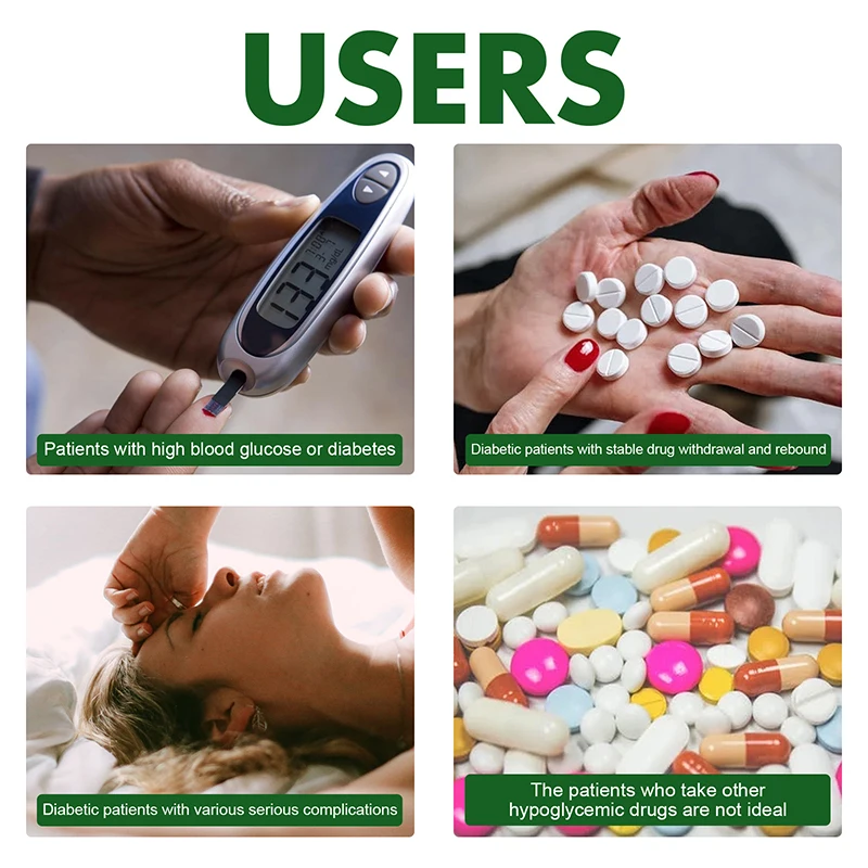 Название продукта:Диабетический патчСрок годности:2 годаПосылка:6 шт./пакетФункции:1. Регулирует уровень сахара в крови и нормализует уровень сахара в крови.2. Регулирует кровообращение и балансирует систему органов3. Помогает уменьшить боль, одышку и частое мочеиспускание.4. Отсутствие побочных эффектов, безболезненных, безопасных и эффективных.Применение для людей:1. Больные с высоким содержанием сахара в крови или диабетом и восстановленным диабетом.2. Больные диабетом, страдающие осложнениями.3. Больные, принимающие другие гипогликемные препараты, не идеальны.Высокий уровень сахара в крови может вызвать следующие признаки:1. Быстрое сердцебиение2. Частое и срочное мочеиспускание3. Потеря аппетитаИспользование:1. После использования патча на диабет, если вы принимаете другие химические вещества, пожалуйста, не останавливайтесь.2. Ежедневное измерение уровня сахара в крови и запись 80% пациентов используют 4-8 недель после того, как уровень сахара в крови снизится, затем постепенно уменьшится потребление лекарственных средств.3. Мойте руки после и вокруг кожи чистой.4. Откройте посылка, выньте пластырь, чтобы открыть поверхность, затем найдите положение кнопки живота, сначала нажмите среднюю часть штукатурки, а затем аккуратно нажмите на край.Примечание:Если есть определенные побочные эффекты, такие как непереносимость определенных ингредиентов, вы можете остановить лечение в любое время.