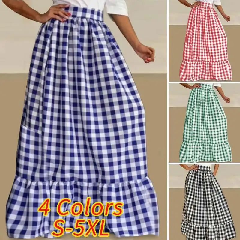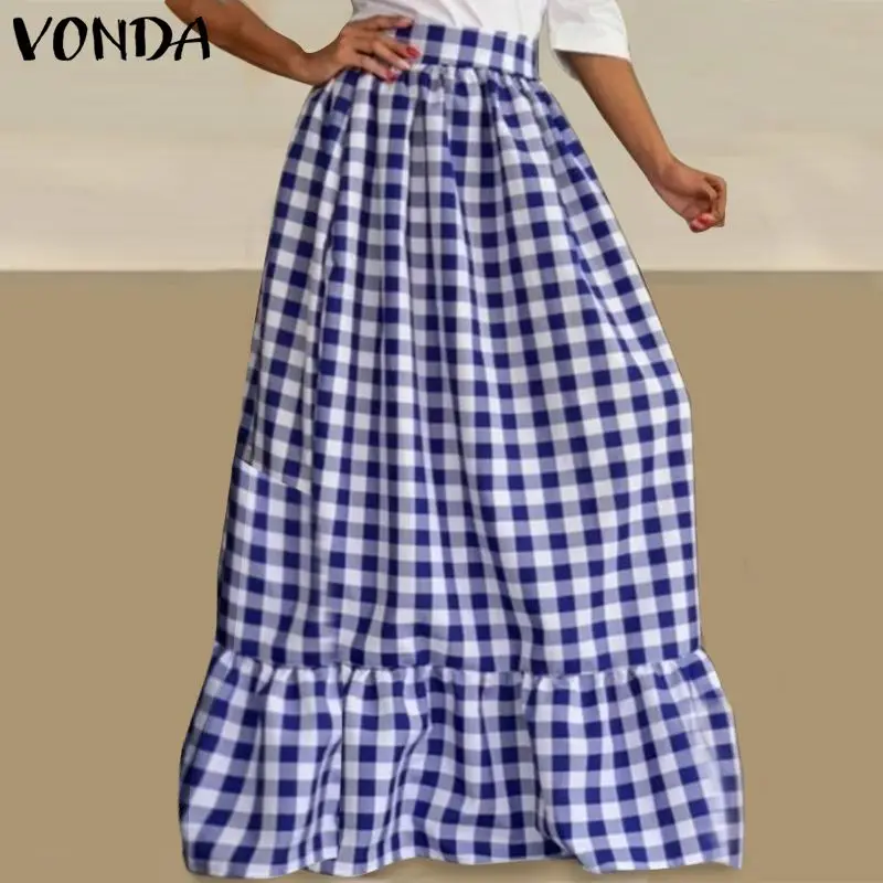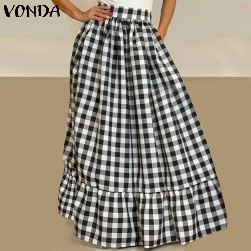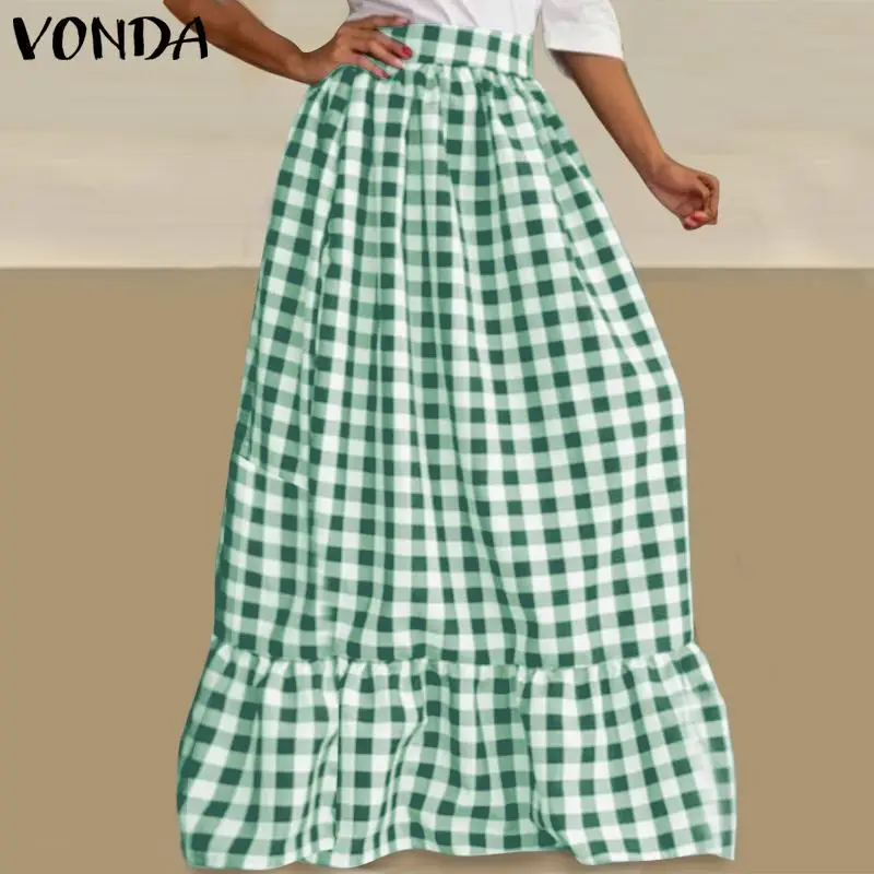 2021 летние юбки VONDA с высокой талией, винтажные клетчатые мешковатые юбки в клетку, повседневная юбка с оборками на подоле, свободная уличная одежда