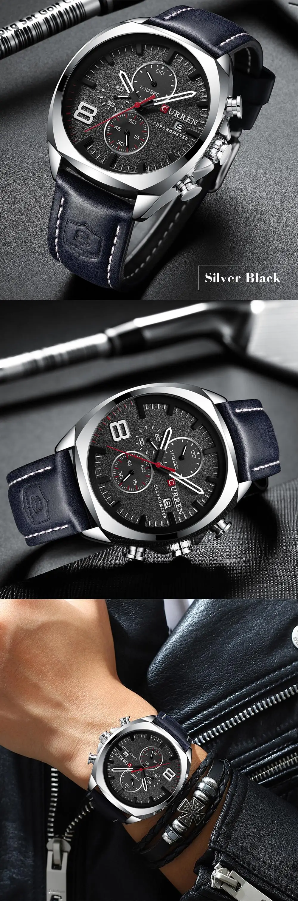 Часы наручные CURREN мужские с кожаным ремешком, модные повседневные Роскошные спортивные водонепроницаемые кварцевые в стиле милитари, 8324