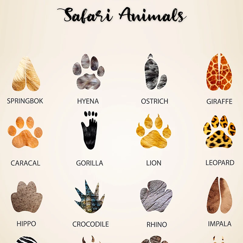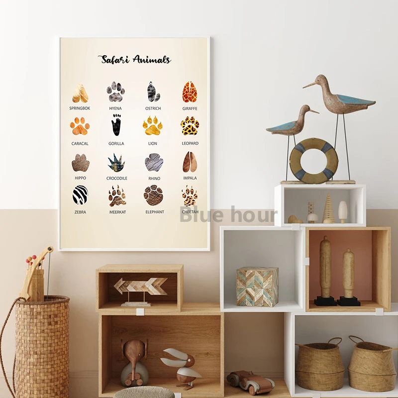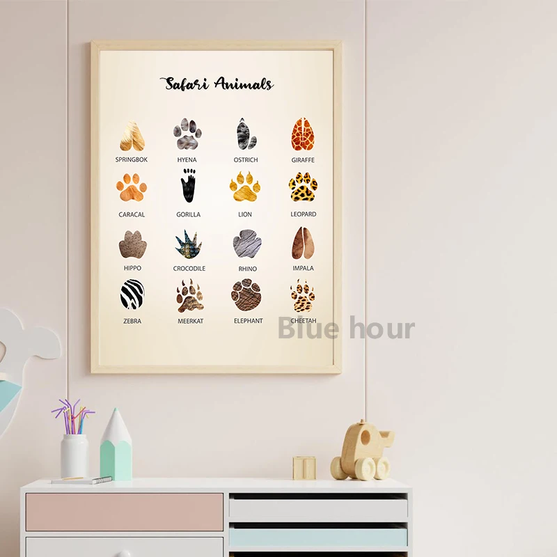 Сафари, животные, следы, холст, живопись, принты для детской комнаты, настенные картины, подарок для будущей мамы, постер с треком животных, декор для детской комнаты