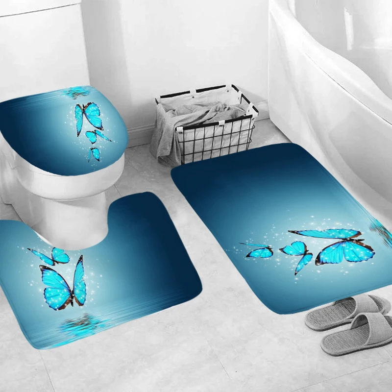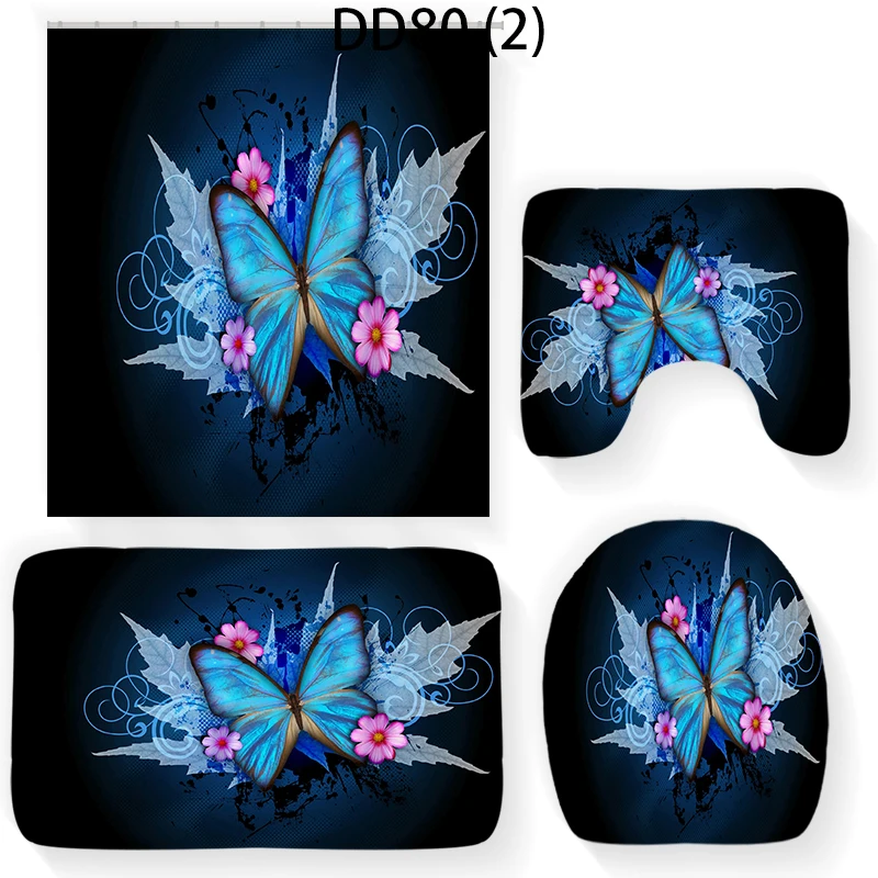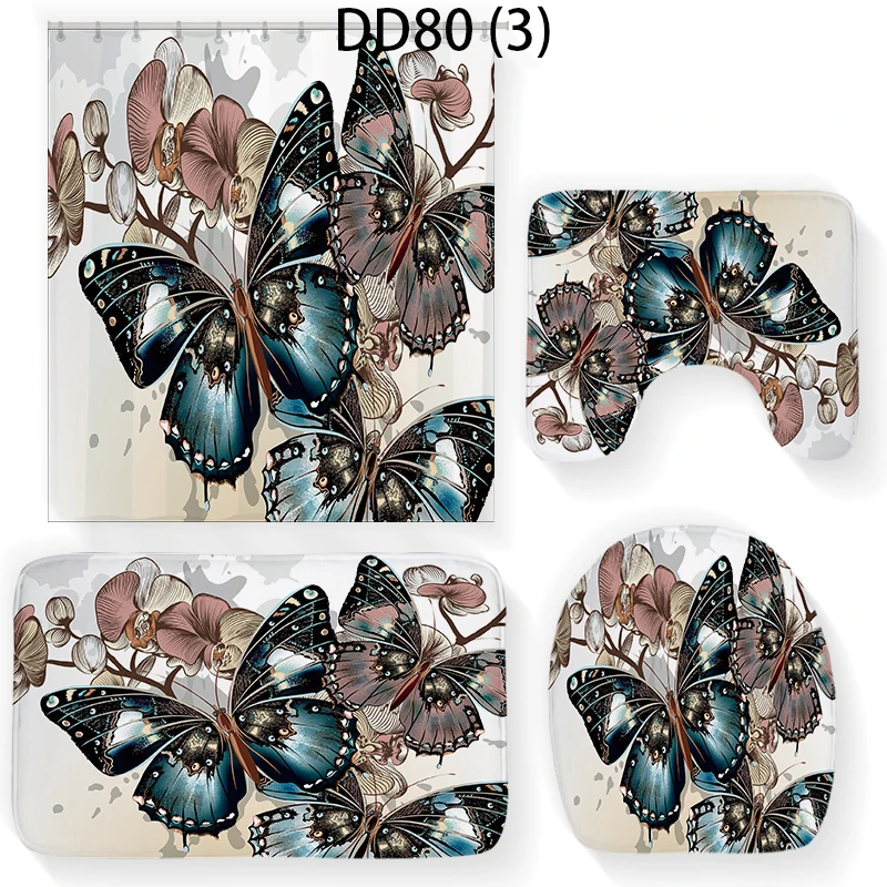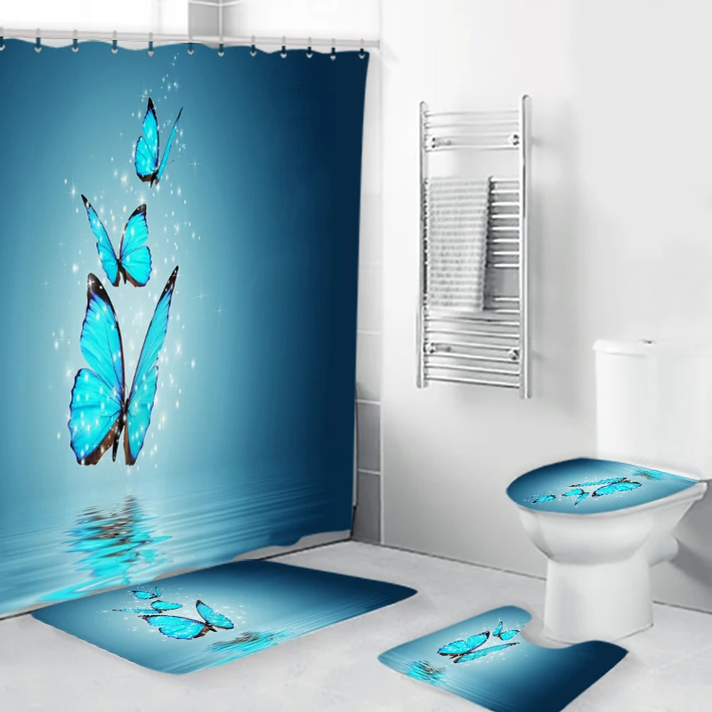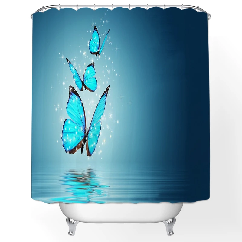 Красивая занавеска для ванной комнаты с синими бабочками, водонепро...
