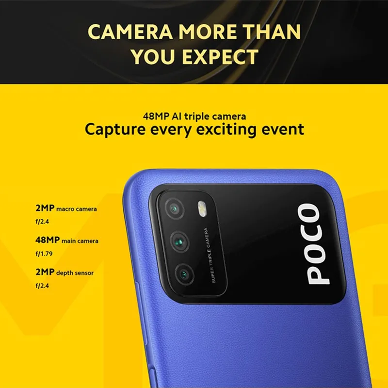 Смартфон POCO M3, экран Глобальная версия дюйма, 4 Гб 64 Гб128 ГБ, Snapdragon 662G, камера 48 МП, 6000 мА ч, дисплей 6,53 дюйма, POCOM3 POCO M 3