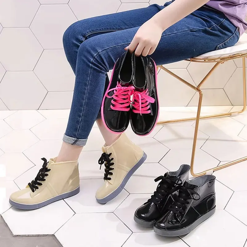 Прозрачные дождевые ботинки водонепроницаемая обувь, модные желейные лодки для женщин, повседневные рабочие сапоги для улицы, для дождливых дней, до щиколотки