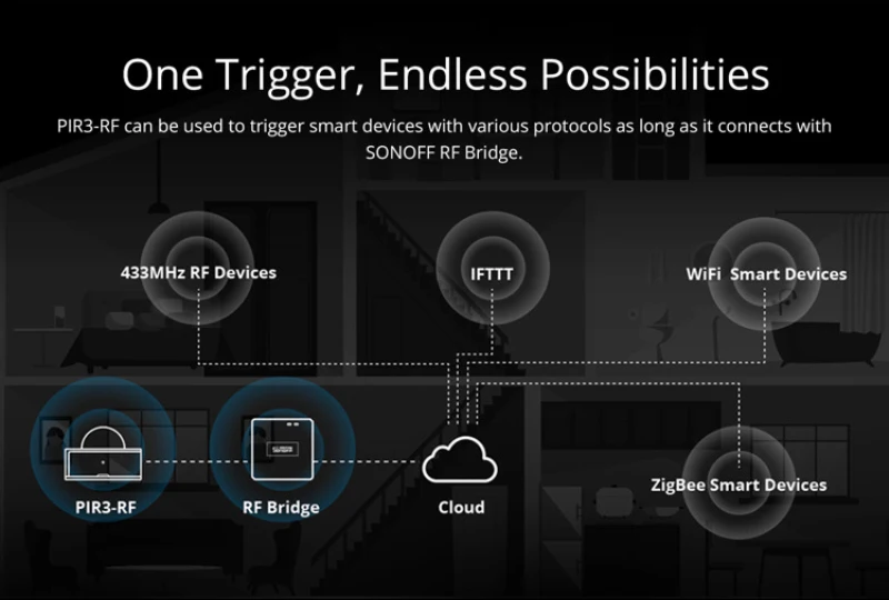 1. Для работы датчика PIR3-RF требуется радиочастотный мост SONOFF 433 МГц.