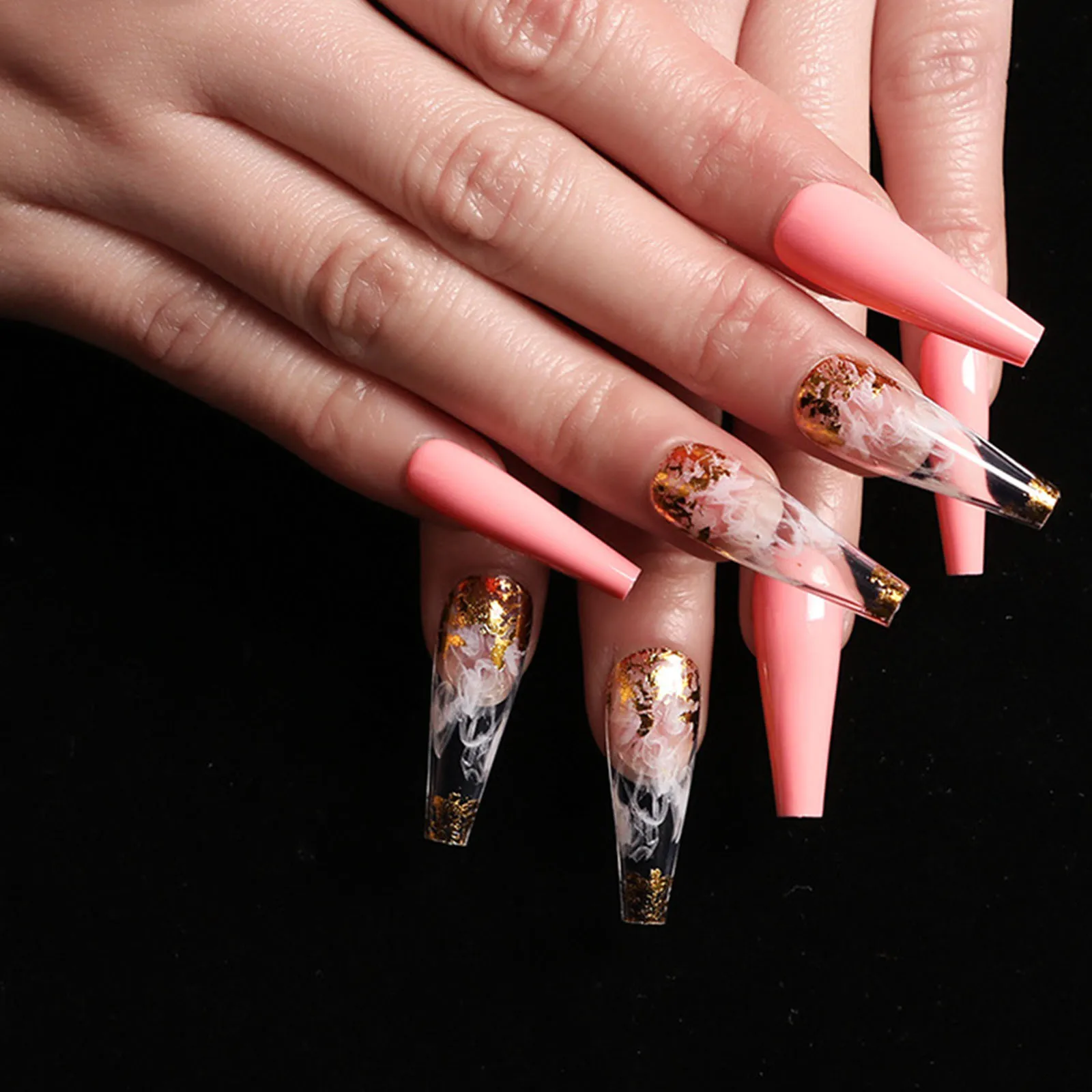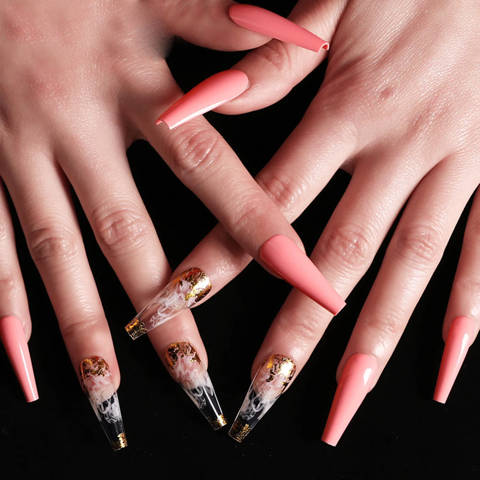 24 шт.кор. длинные искусственные ногти с резиновыми полосками продается в европейском и американском стиле; Балетки на ногти оранжевого дыма дизайн поддельные накладных ногтей коробка