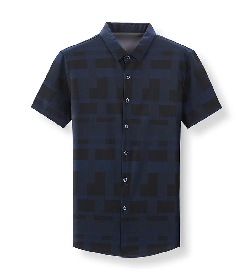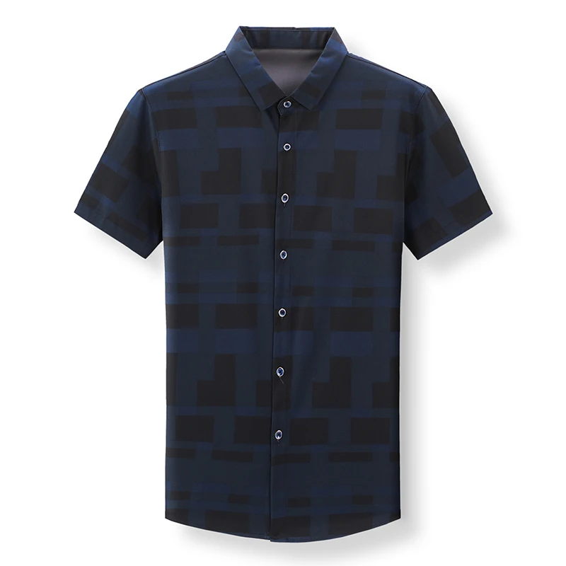 Рубашка мужская, с коротким рукавом, в клетку, повседневная, приталенная, C776