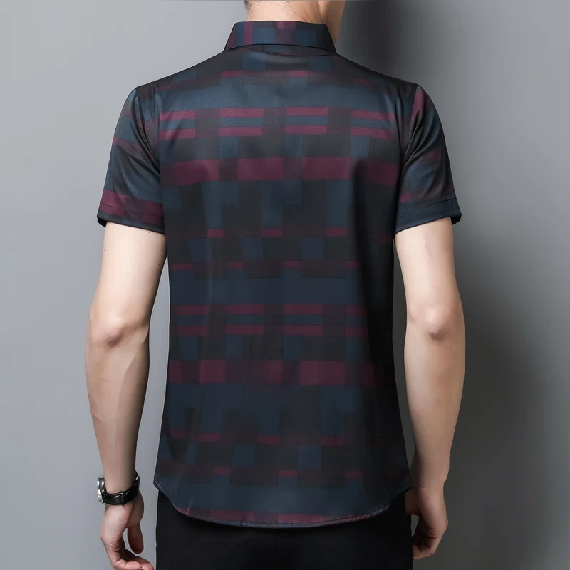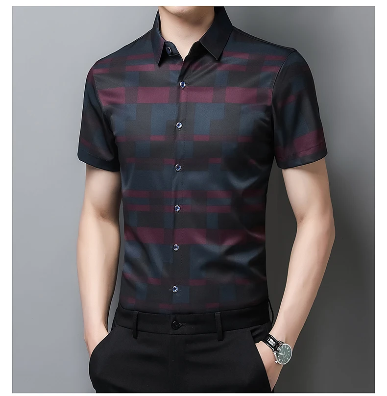 Рубашка мужская с коротким рукавом, шелк, Повседневная приталенная,...