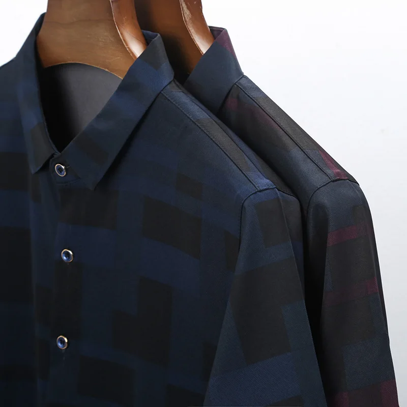 Рубашка мужская приталенная с принтом, шелковая Хлопковая сорочка с...