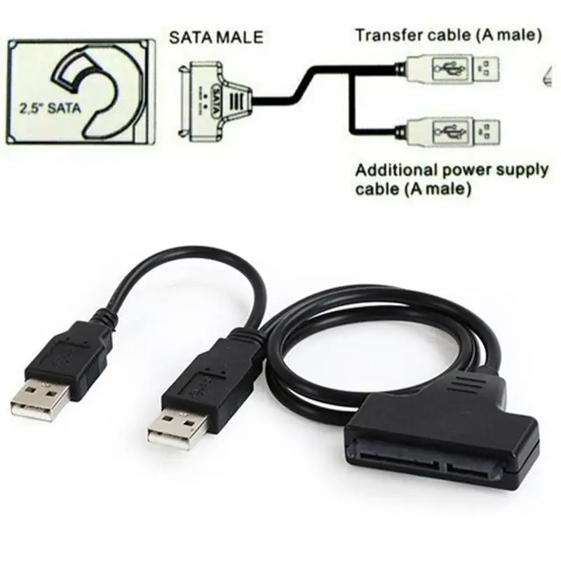 Кабель HDD 7 + 15pin SATA, USB 2,0 a 2,5 pulgadas, adaptador para SATA disco SSD HDD ноутбук жесткий диск кабель 45 см